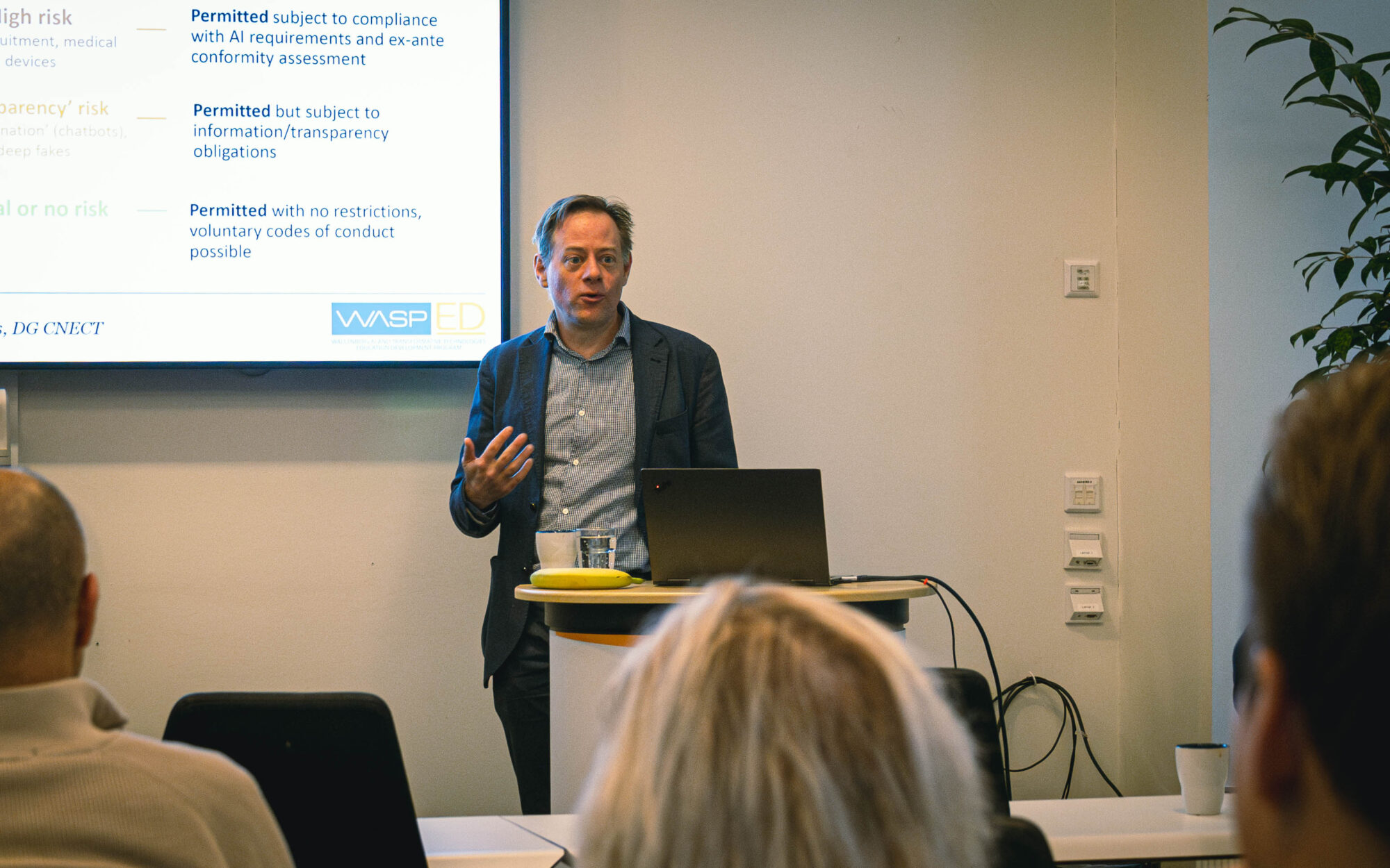 Trots EU-lagstiftningen saknas fortfarande riktlinjer för hur AI ska hanteras i Sverige. För att nå ett fungerande svenskt regelverk så snart som möjligt, förklarade Fredrik, krävs tydligare politisk styrning med framtiden i beaktning. Efter en kort redogörelse för hur Sverige och svenska företag strategiskt kan närma sig AI avslutade han föreläsningen med ett tydligt meddelande till beslutsfattare: