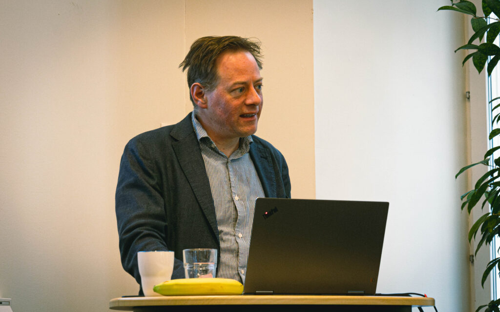 Efter Peters tunga men minst sagt nyttiga dragning följde en kort paus. Därefter fick de möta Fredrik Heintz, professor vid Institutionen för Datavetenskap vid Linköpings universitet. Fredrik, som bland annat ingår i regeringens AI-kommission, är en av Sveriges främsta experter på artificiell intelligens och berättade för nätverket om tillitsfull AI: