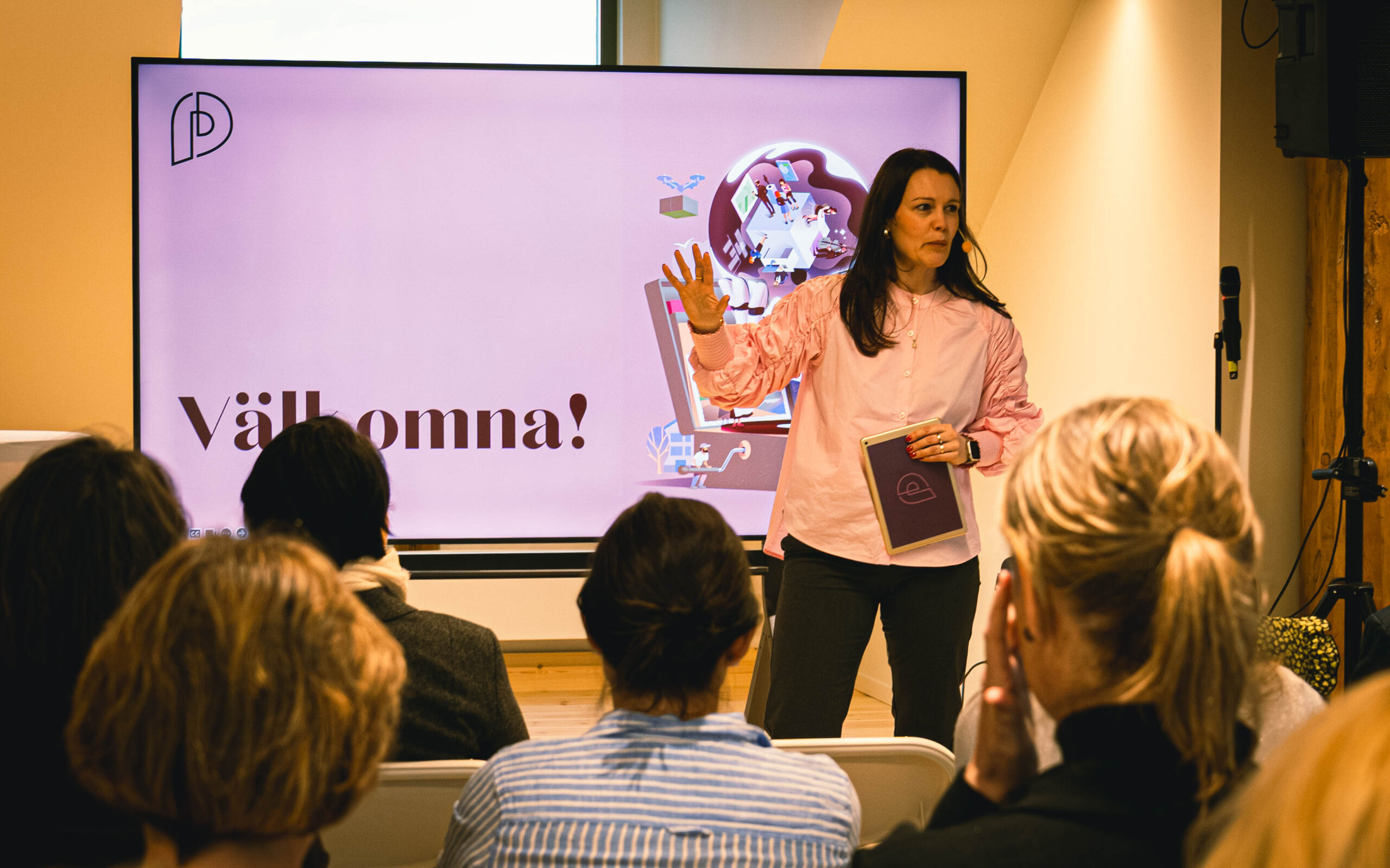 Kvällens första presentation hölls av Placebranders vd Anna Österlund, som berättade om 2025 års trendrapport. I rapporten skriver man om vad som gäller kring platsutveckling och -marknadsföring, enligt två tydliga spår: snabba och långsamma trender.