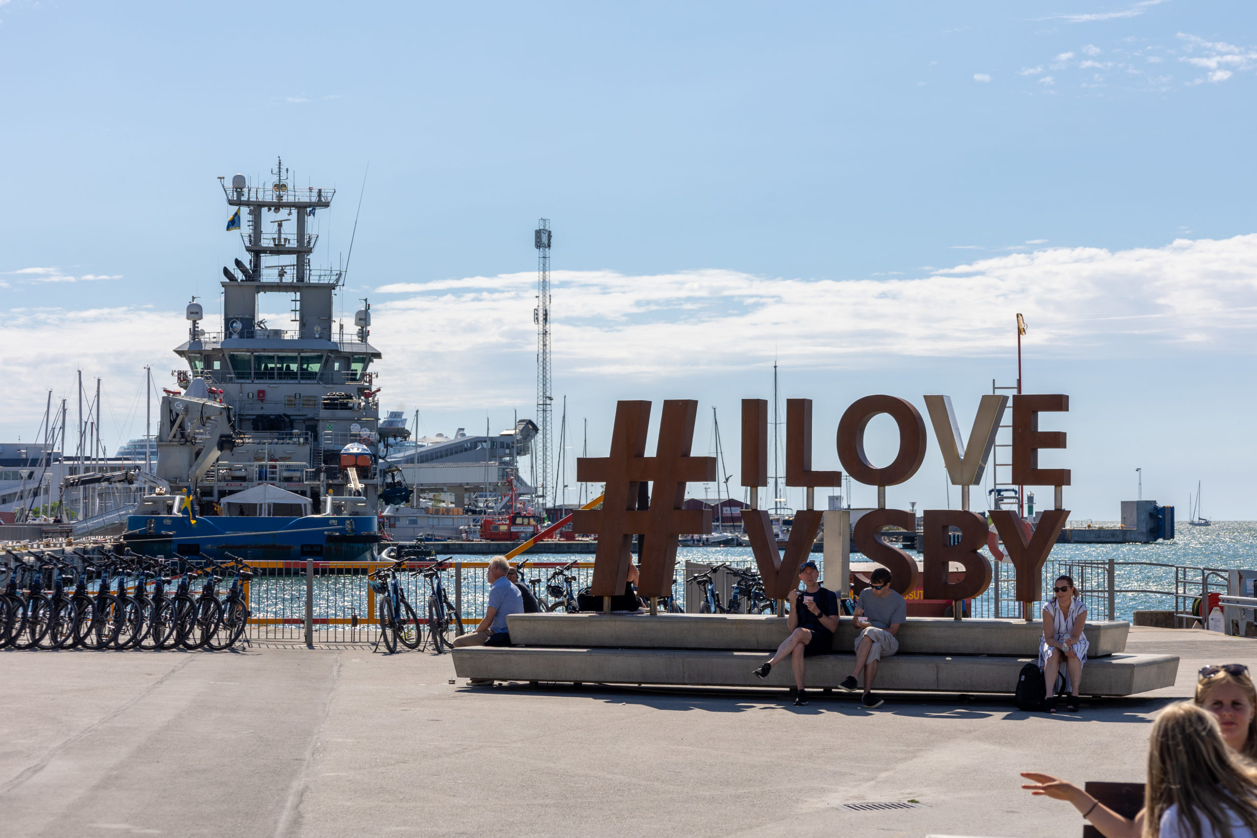 Entrén till Handelskamrarnas arena på Strandgatan i Visby