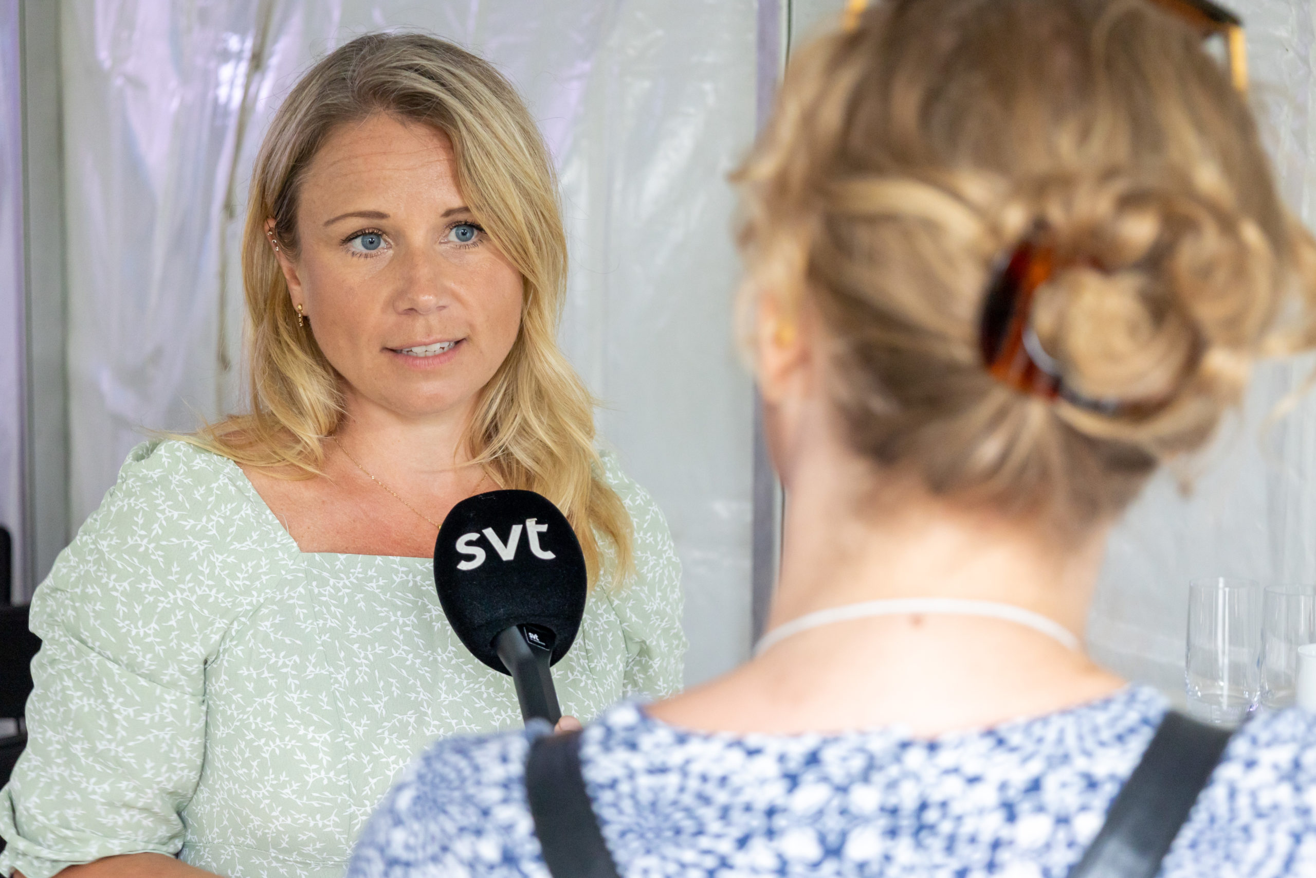 Maria Björk Hummelgren intervjuas av SVT Nyheter.
