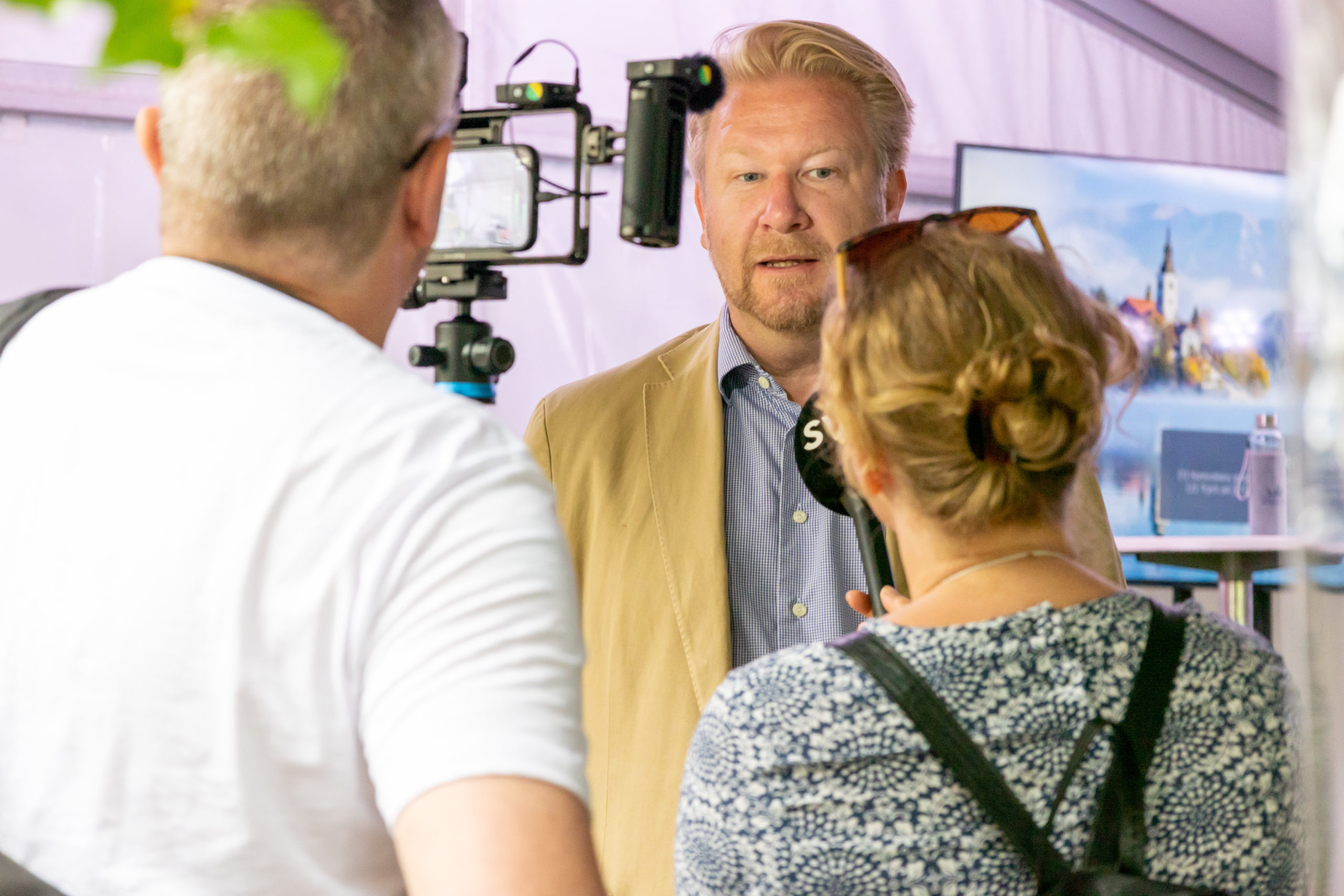 Östsvenska Handelskammarens vd Simon Helmér intervjuas av SVT Nyheter.