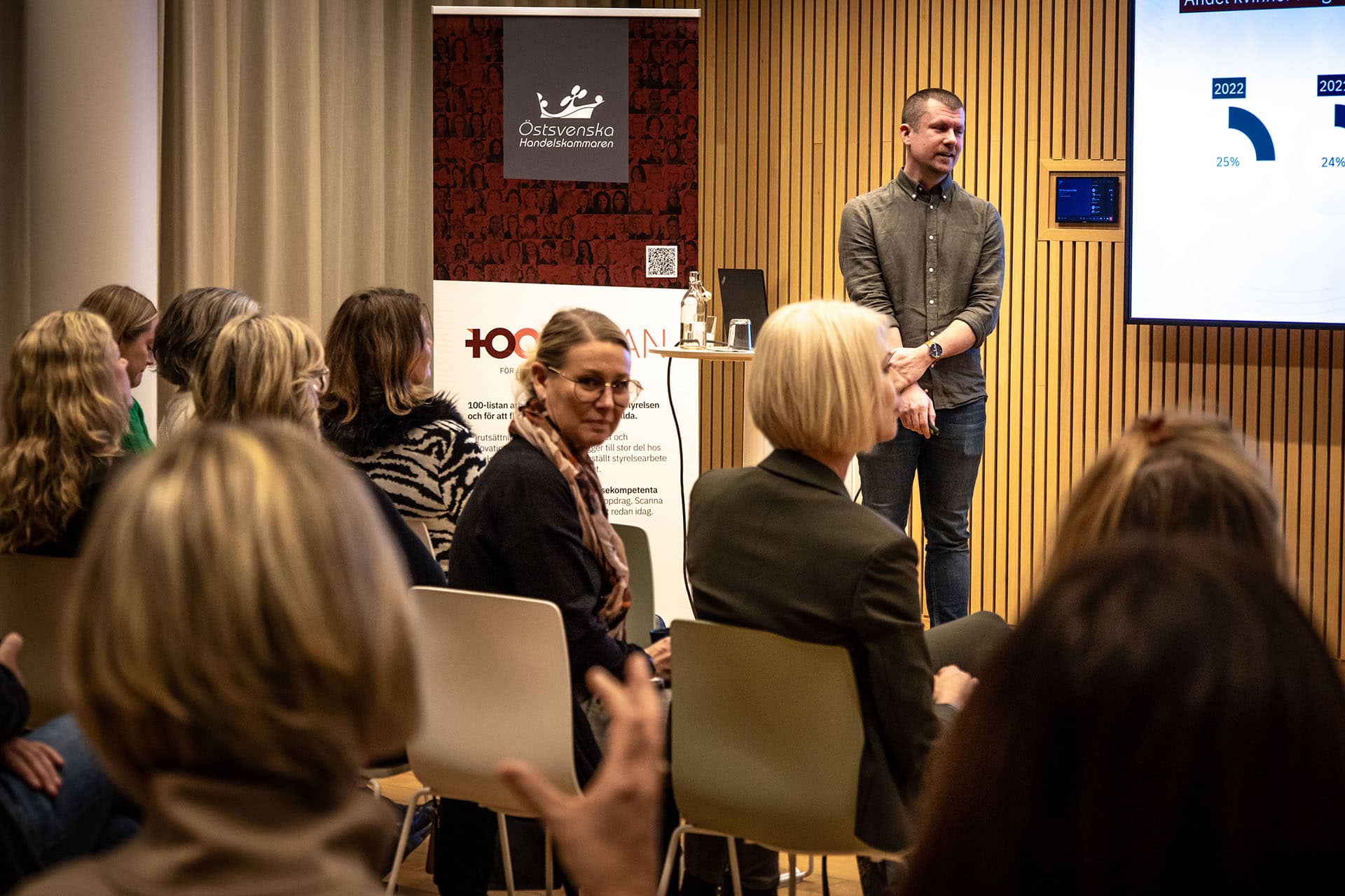 Den 22 november var det äntligen dags för rapportsläppet av Östsvenska Handelskammarens och 100-listans årliga undersökning om jämställdheten i bolagsstyrelser bland de 340 största företagen i Östergötland, Sörmland och på Gotland. Eventet lockade många deltagare och ägde rum i Linköping, Norrköping och Visby samtidigt. Se bilderna från kvällen här!