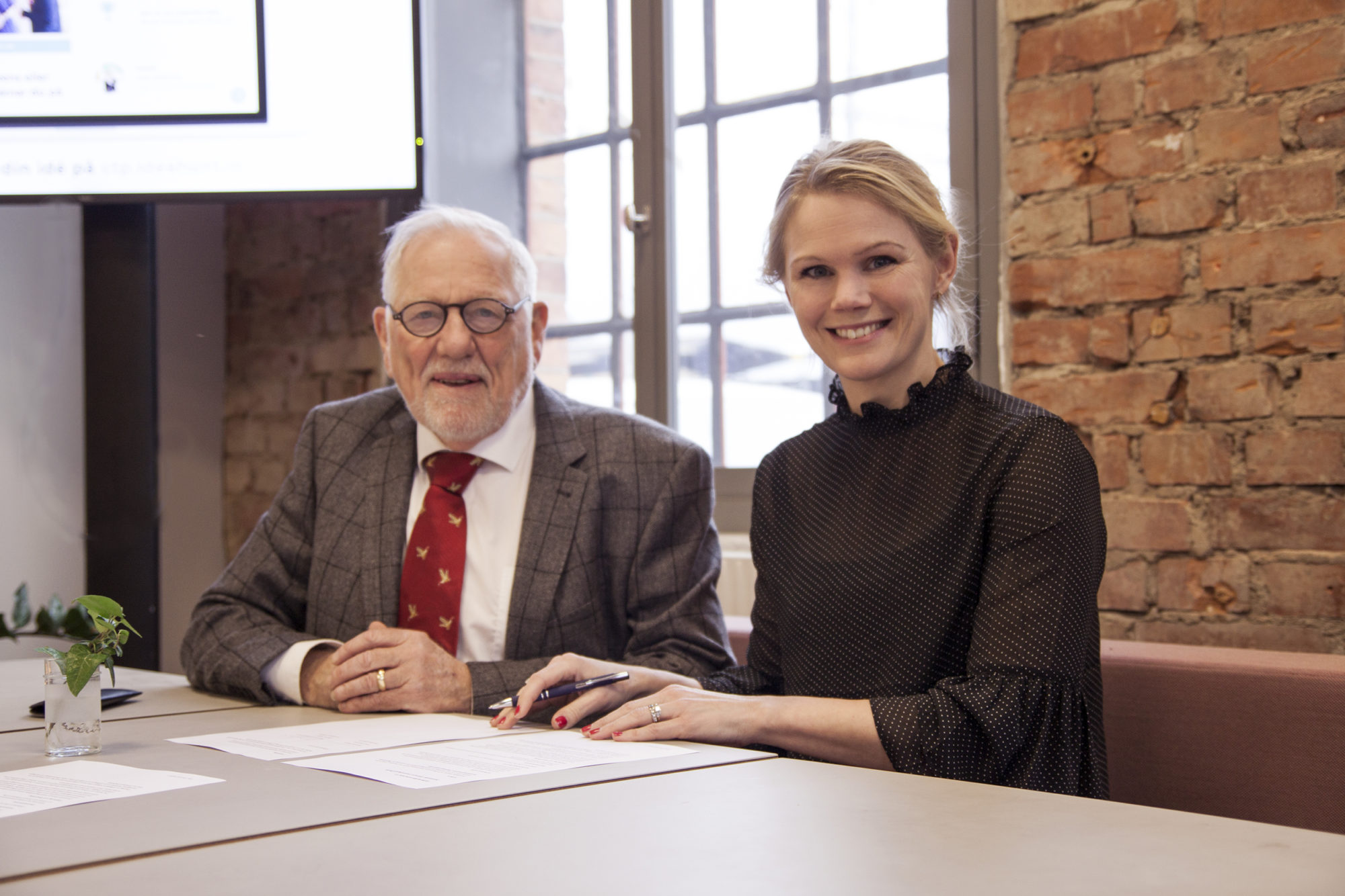Signering. Nu har Handelskammaren officiellt tagit över stipendieutdelningen. Här Siwert Westlund, ordförande för Datasaabs Vänner och Johanna Palmér, vd Östsvenska Handelskammaren.