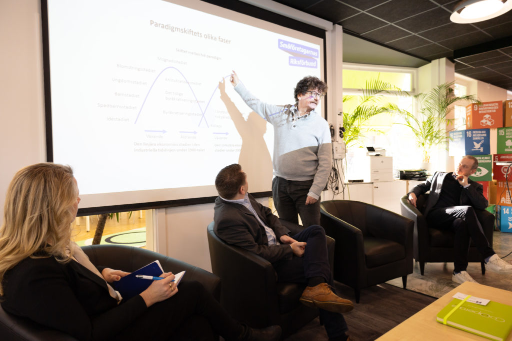 Mattias Andersson, näringspolitiskt ansvarig på Småföretagarnas Riksförbund inledde med en beskrivning av småföretagens roll i samhällets ekosystem och sedan följde samtal och frågestund tillsammans med Martin Sjölander (M), kommunstyrelsens ordförande i Söderköping och Lars Stjernkvist (S), tidigare kommunalråd i Norrköping och numera krönikör bland annat Norrköpings Tidningar. Samtalet leddes av Maria Björk Hummelgren, näringspolitisk chef Östsvenska Handelskammaren.