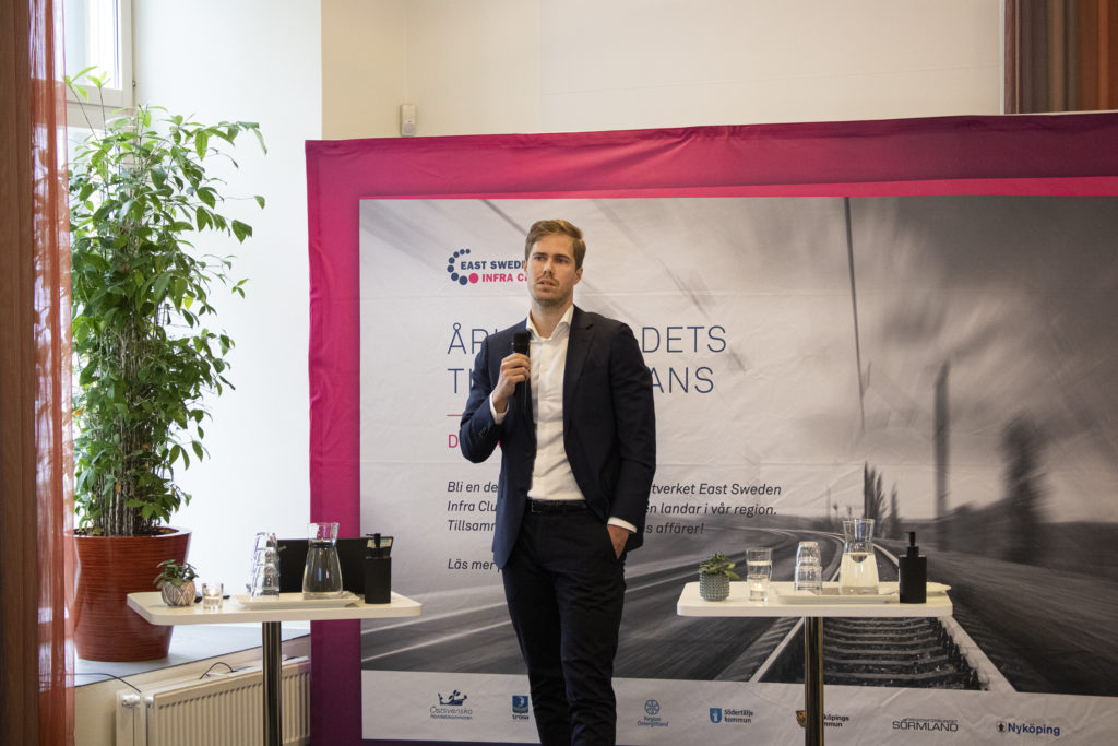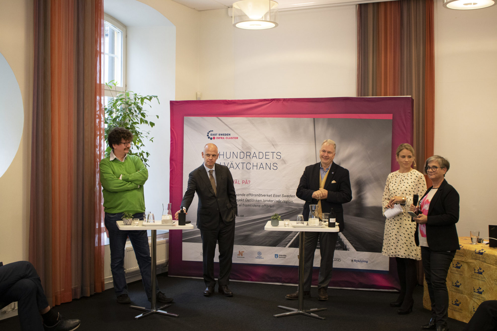 I en efterföljande paneldebatt där politiska representanter från kommunerna längs Ostlänkensträckan deltog, kom det att handla en hel del om hur man ska locka unga personer till de aktuella yrkena. Panelsamtalet leddes av Handelskammarens näringspolitiska chef Maria Björk Hummelgren.