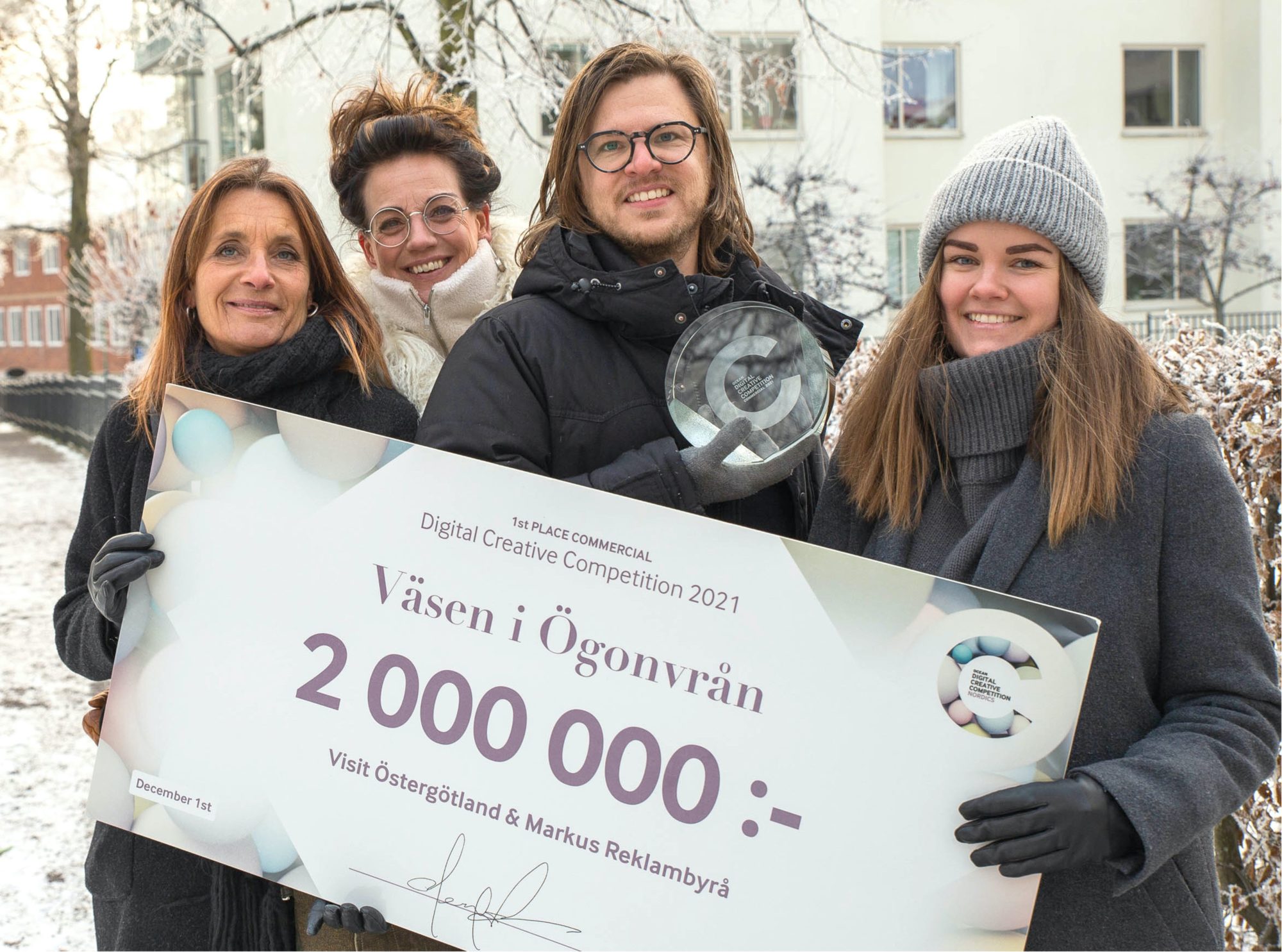 Vi hann knappt smälta den vinsten innan vi fick veta att vi även tagit hem första pris i en tävling som anordnas av Ocean Outdoor, den ledande aktören inom DOOH (Digital Out of Home). I den tävlingen tävlade vi inte med en färdig produktion utan vi skickade in en idé som anspelade på vårt tidigare koncept för Visit Östergötland men i en ny tappning anpassat för digitala utomhustavlor. Tävlingens tema fokuserade på kreativitet samt utveckling av Digital out of home. Och där vann vi alltså första pris, vilket var hela 2 miljoner kronor i media fördelat på valfria av Ocean Outdoors digitala skärmar runt om i Sverige. Otroligt häftigt!