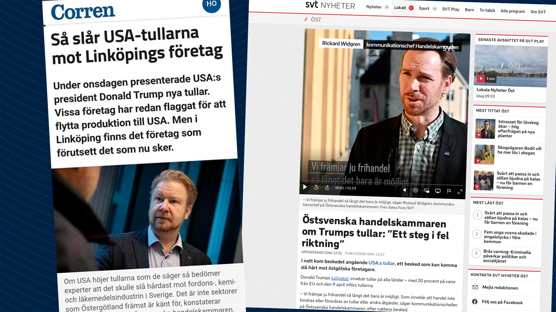 Handelskammarens vd Simon Helmér intervjuades av Corren under torsdagen. Under onsdagen presenterade USA:s president Donald Trump nya tullar. Vissa företag har redan flaggat för att flytta produktion till USA. Men i Linköping finns det företag som förutsett det som nu sker. Läs mer i Corren (extern länk).