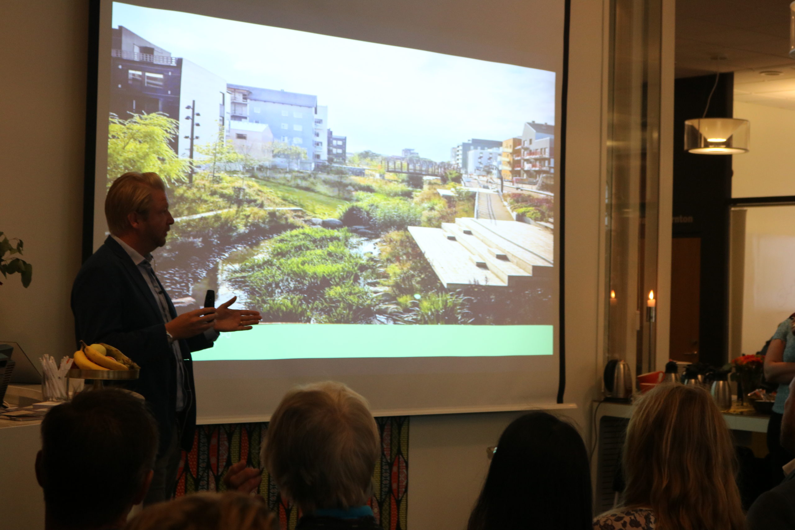 Idag gästade Simon Helmér, VD för Linköpingsexpo, Östsvenska Handelskammaren i Norrköping och berättade om Vallastaden. På rekordtid har 40 aktörer byggt 1000 bostäder och skapat en tät, grön och blandad stadsdel. Genom att dela upp stadsdelen i mindre delar fick fler aktörer chans att bygga samtidigt som en mångfald av bostadsmiljöer skapades. Inom samma kvarter samsas villor, radhus, trapphusboenden, generationsboenden, bostadsrätter, studentbostäder och hyresrätter.