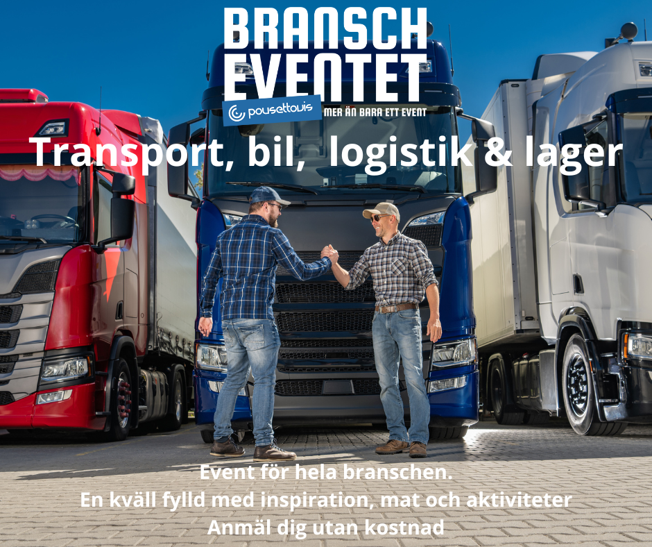 Välkommen till ett exklusivt branschevent för TRANSPORT, BIL, LOGISTIK & LAGER! Datum: Onsdag 17 september Tid: 16.30-21.00 Plats: Eventcenter i Norrköping