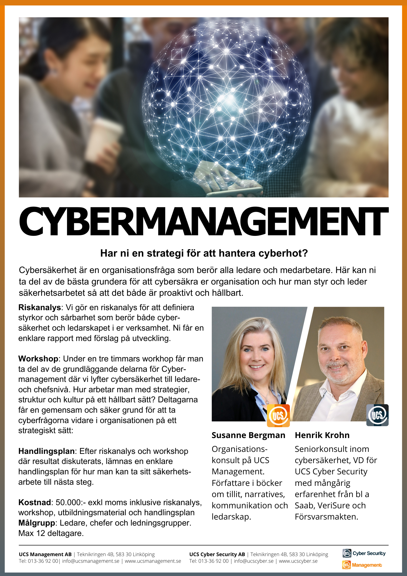 Läs mer om Cybermanagement via länken: Cybermanagement – UCS Cyber Security