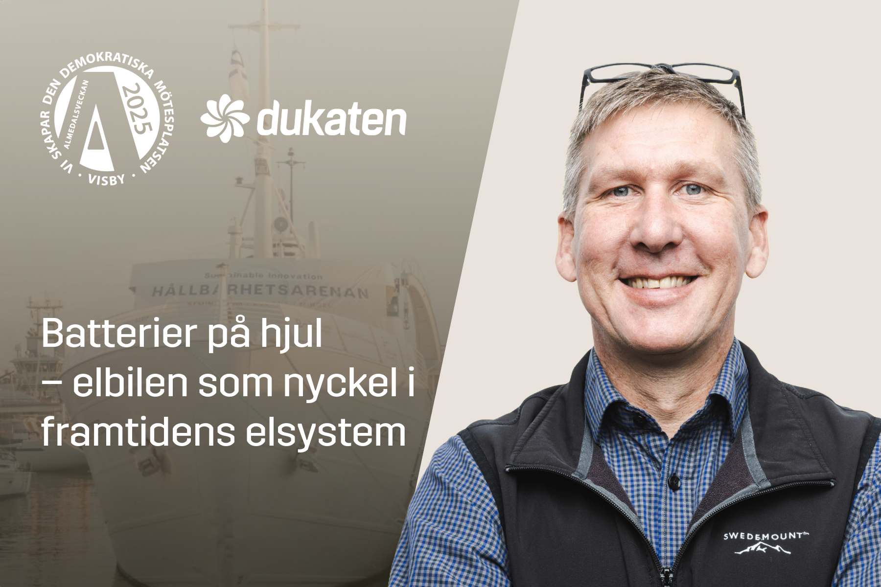 Under Almedalsveckan bjuder Dukaten in till ett seminarium om elbilens roll i framtidens elsystem. Fokus ligger på V2G-teknik, laddinfrastruktur och hur mobilitet kan bli en aktiv del av energiomställningen.