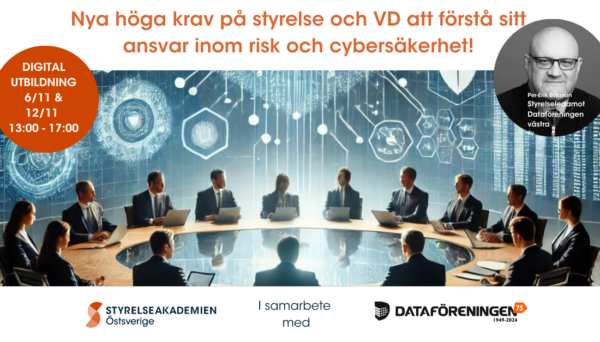 Cybersäkerhet för styrelse och vd – NIS2 – allt du behöver veta. Kurs för VD och styrelse med Styrelseakademien och Dataföreningen.