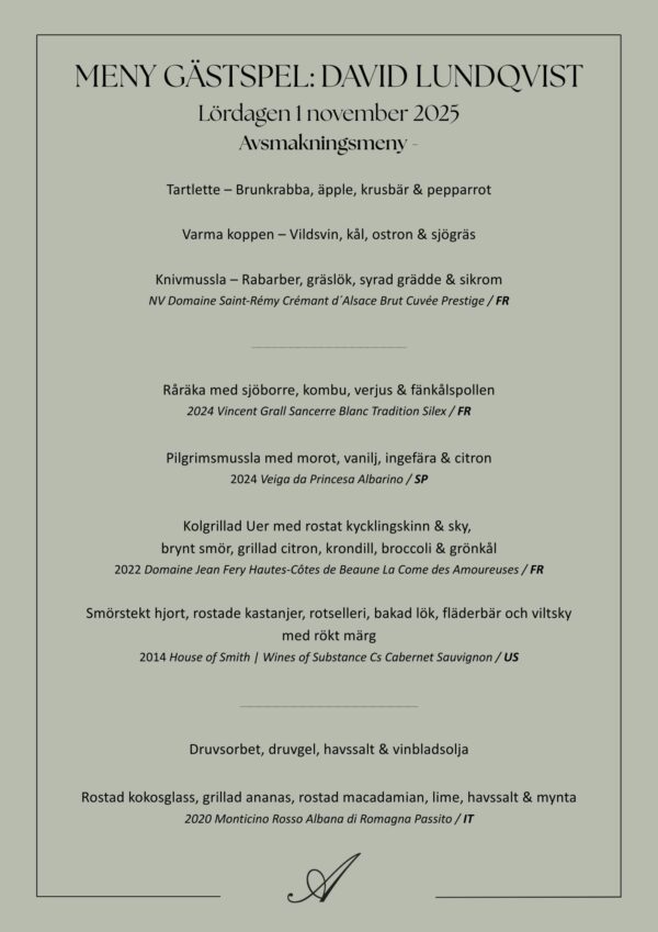 Den 1/11 har vi återigen äran att välkomna David Lundqvist (årets kock 2018) till vårt kök på Arkösunds hotell.