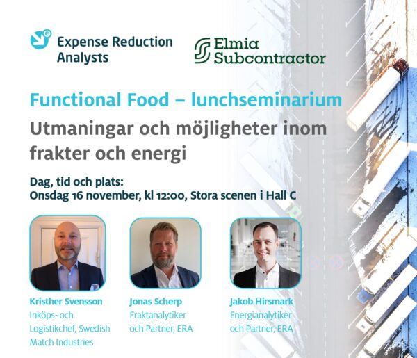 Inbjudan till lunchseminarium på Elmia Subcontractor -Utmaningar och möjligheter inom frakter och energi med Expense Reduction Analysts.