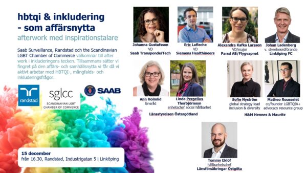 Tillsammans med Saab Surveillance och Scandinavian LGBT Chamber of Commerce (SGLCC) hälsar vi er välkomna till en afterwork i inkluderingens...