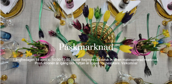 Långfredagen den 18/4 arrangerar Reijmyre Glasbruk påskmarknad i hantverksbyn. Öppen hytta, traditionsenlig hyttpredikan, fina erbjudanden i butiken, matknallar och härlig...