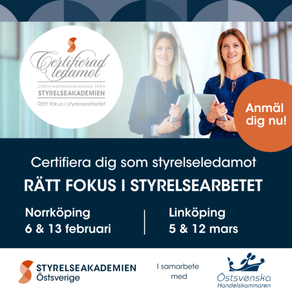 Certifieringsutbildning med Styrelseakademien – Rätt fokus i styrelsearbetet (SME) i Norrköping och Linköping
