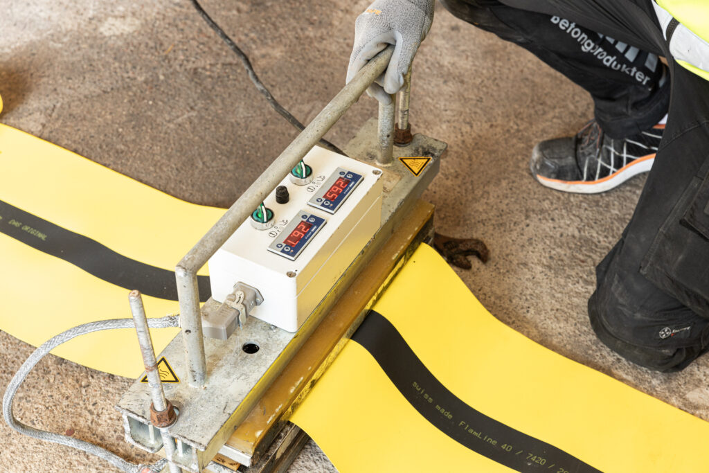 - Första lagret av tätskikt, läggs fram till fogöppningen