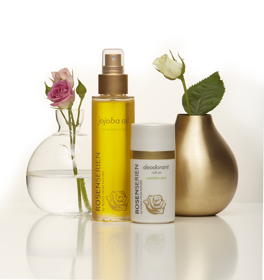 – Rosenserien är en svenskproducerad, naturlig och ekologisk hudvårdsserie som är miljömärkta av Svanen. Vi tillsätter heller inte vatten utan produkterna är baserade på rättvisemärkt och ekologisk aloe vera vilket gör dem både effektivare och drygare än vattenbaserade produkter. Vi är svanenmärkta och det är en garanti för att produkterna uppfyller höga miljö-, hälso- och kvalitetskrav.