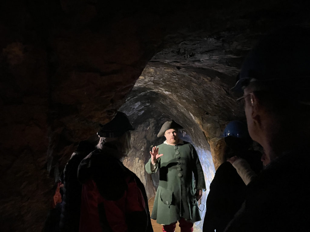 När du tar dig ner i gruvan längs trätrottoarer och trappor är det som att förflyttas 250 år tillbaka i tiden. Guidade visningar väcker gruvans historia till liv och får tankarna att snurra kring hur livet såg ut för den tidens gruvdrängar.