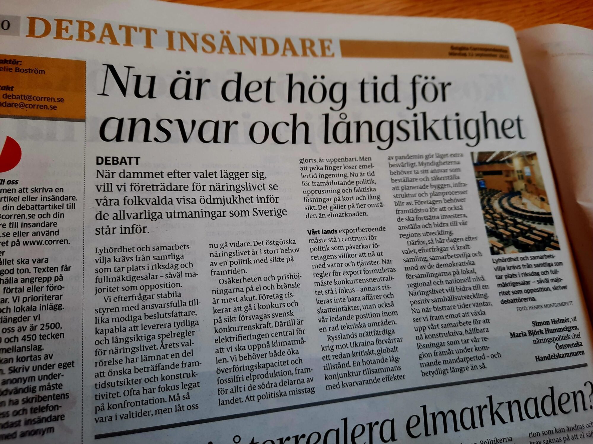 Debattartikel publicerad i Corren, NT, Hela Gotland, MVT, Katrineholms-kuriren och Södermanlands Nyheter.