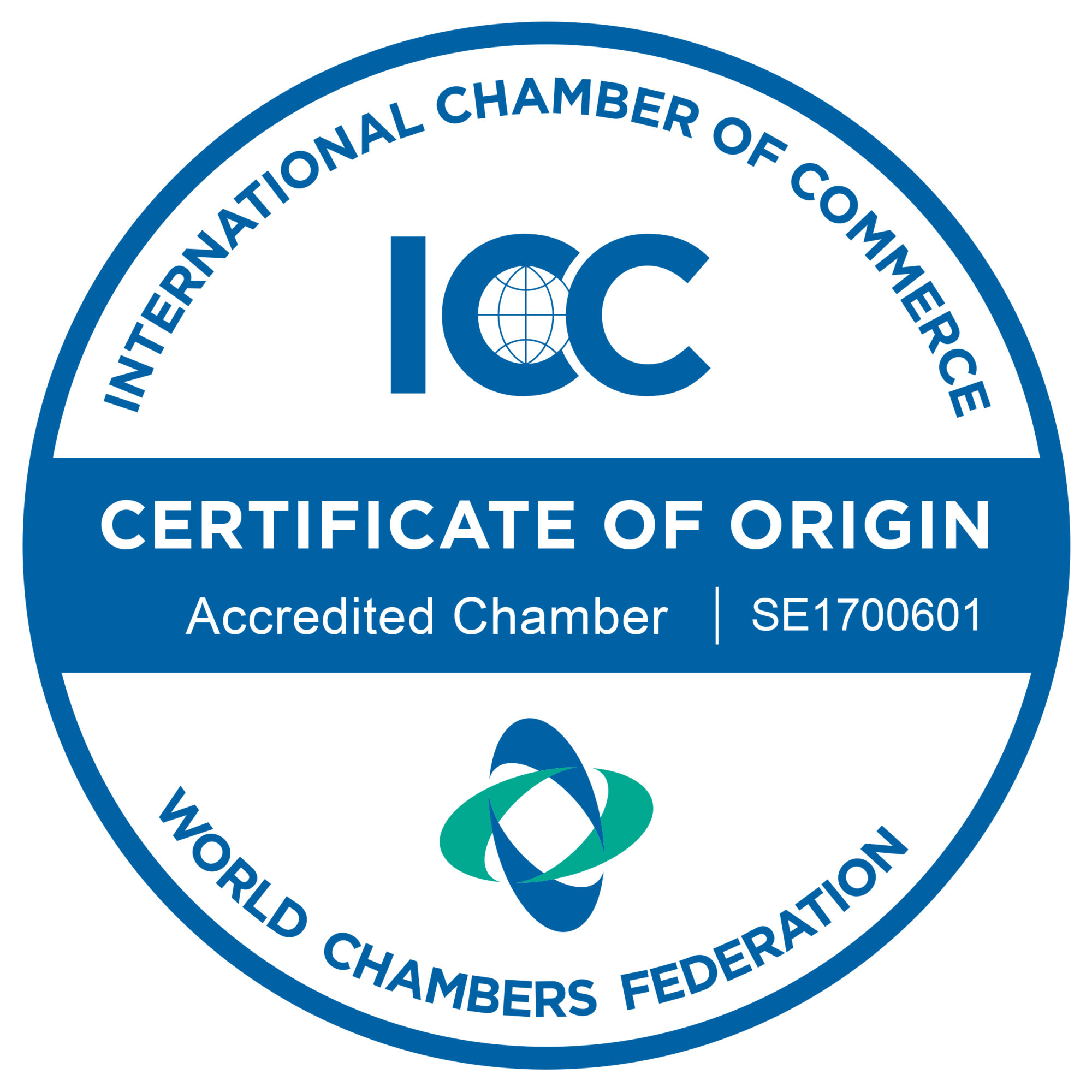 Denna stämpel verifierar att vi på Östsvenska Handelskammaren är ackrediterade av ICC (International Chamber of Commers).