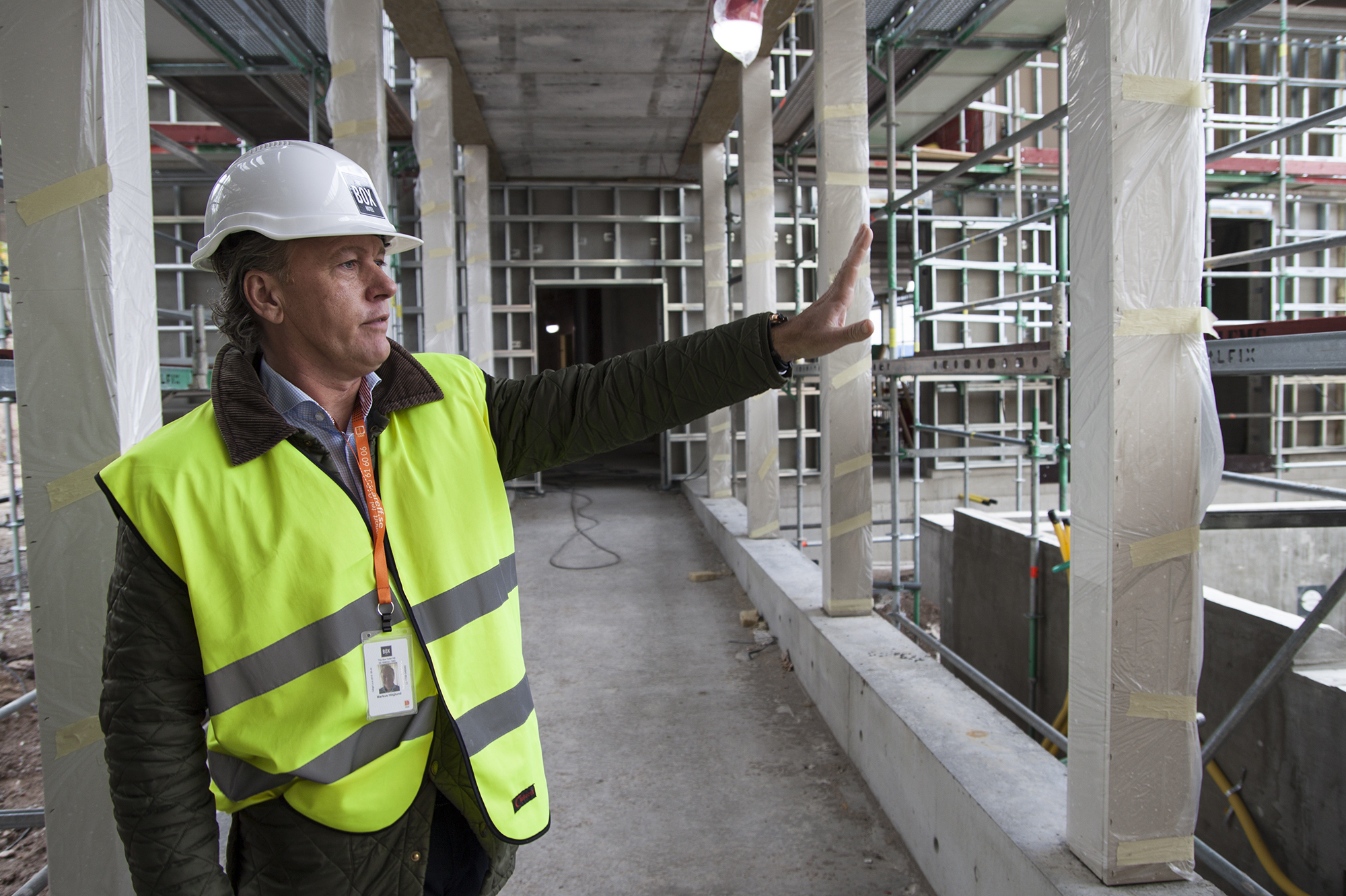 Markus Höglund ger Östsvenska Handelskammaren en rundtur och visar var utomhuspool, gym och spa ska ligga.