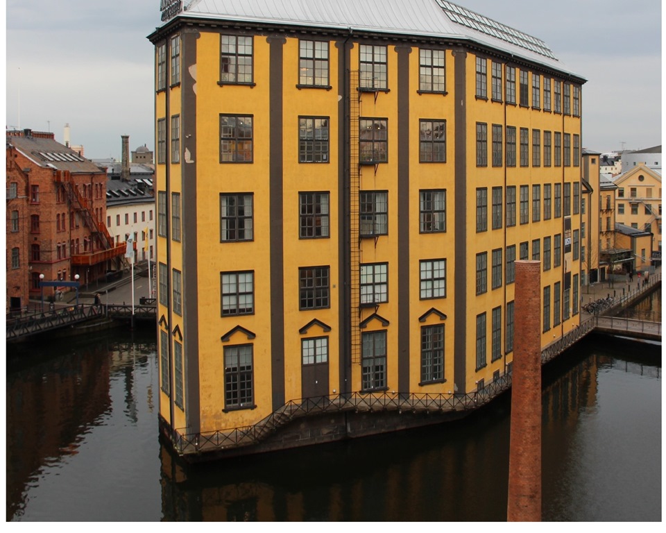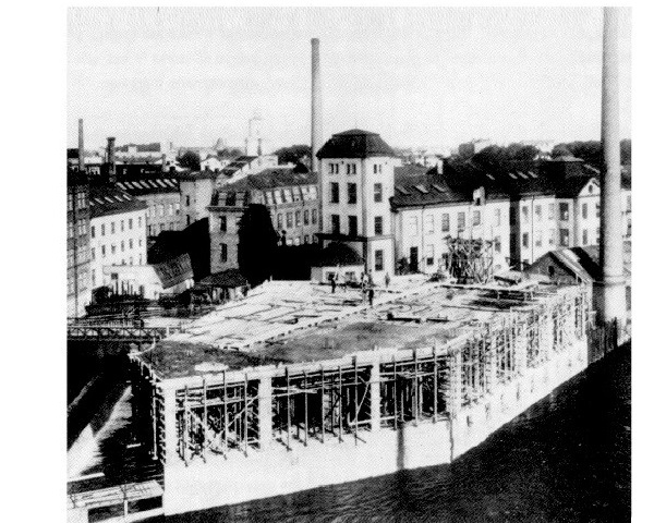 Strykjärnet reser sig mäktigt över Motala ström som ett stort skepp. Byggnadens historia börjar under tidigt 1900-tal när Holmen ville bygga ett bomullsväveri för att öka sin tygproduktion. Men det var svårt att hitta en plats. Längs Motala ström låg redan många stora fabriker och tävlade om utrymmet vid vattnet. Som tur var fanns den lilla ön Laxholmen mitt i strömmen. På öns spets låg bara ett äldre färgeri och en liten träbod som laxfiskarna använde. Det fick bli platsen för den nya fabriken!