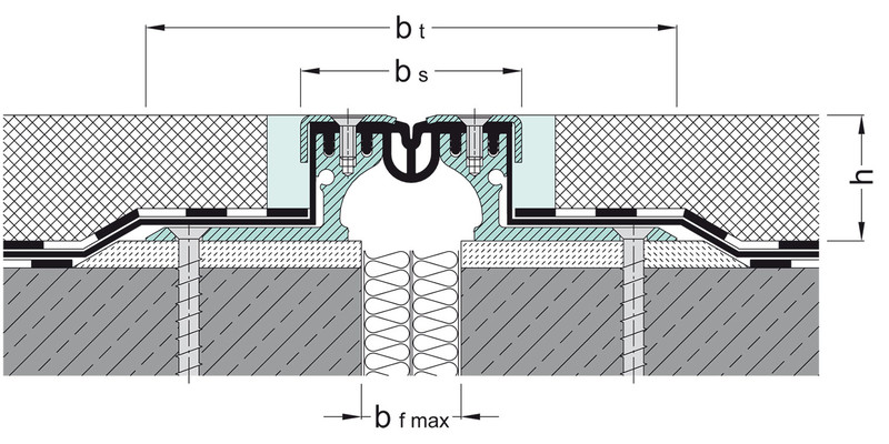 Högbelastbar, stabil konstruktion som ger en mycket långsiktig lösning på en rörelsefog i en mycket utsatt miljö. Lämplig för rörelsefogar i P-hus, garage, gångbroar, ramper, terminaler mm.