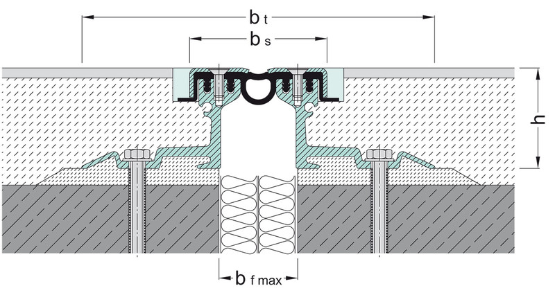 Högbelastbar, stabil konstruktion som ger en mycket långsiktig lösning på en rörelsefog i en mycket utsatt miljö. Lämplig för rörelsefogar i storkök, restauranger, livsmedelshandel, sjukhus, P-hus, garage, gångbroar, ramper, terminaler mm.