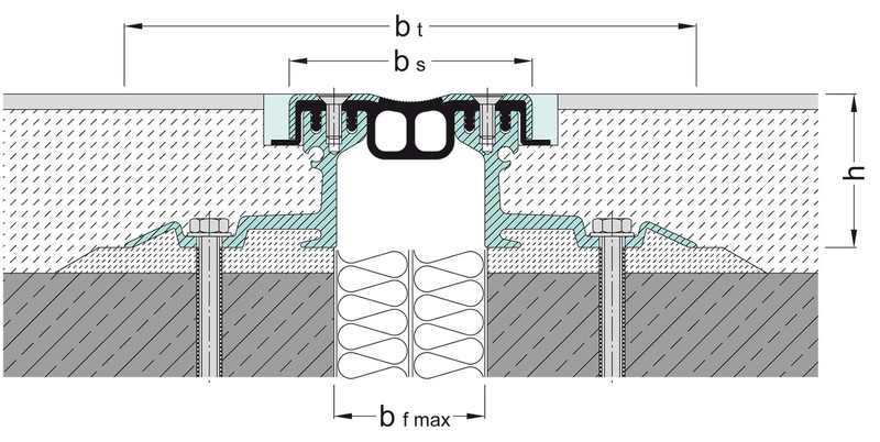 Högbelastbar, stabil konstruktion som ger en mycket långsiktig lösning på en rörelsefog i en mycket utsatt miljö. Lämplig för rörelsefogar i storkök, restauranger, livsmedelshandel, sjukhus, P-hus, garage, gångbroar, ramper, terminaler mm.