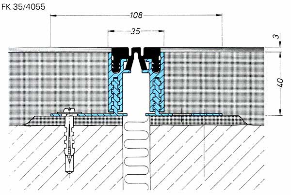 För installation i golv med pvc-mattor. Tätningsbandet sticker upp 3 mm från aluminiumkanten så matta kan anslutas och ge en helt slät passage. Profilen levereras med ett skyddsinlägg som går i nivå med aluminiumprofilens överkant. Undergolvet kan således dras av mot profilens överkant utan att slam tränger ner i profilen. När mattan läggs monteras slutligen det riktiga tätningsbandet.