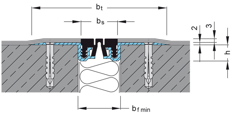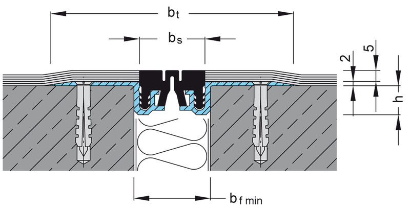 För eftermontering i golvfogar, mellan prefabelement mm. Bryggan limmas och skruvas mot underlaget.