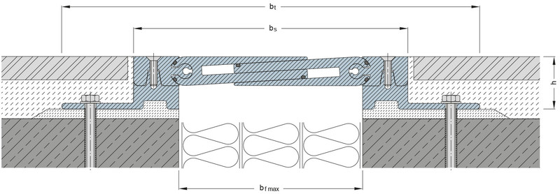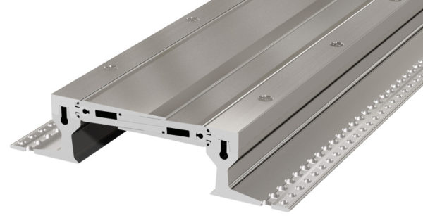 Tar upp fogrörelser i tre riktningar genom kullänksystem. Skarvfri ovansida, ingen smutsansamling. Hålen i monteringsvinklarna säkerställer god förankring. Skarvning sker genom att medföljande skarvstift skjuts in i bryggans delar. Halksäker räfflad ovansida. Vid leverans är bryggan försedd med byglar som håller den i rätt monteringsläge. Gummitätningar förhindrar genomrinning av spolvatten (dock ej helt vattentät)