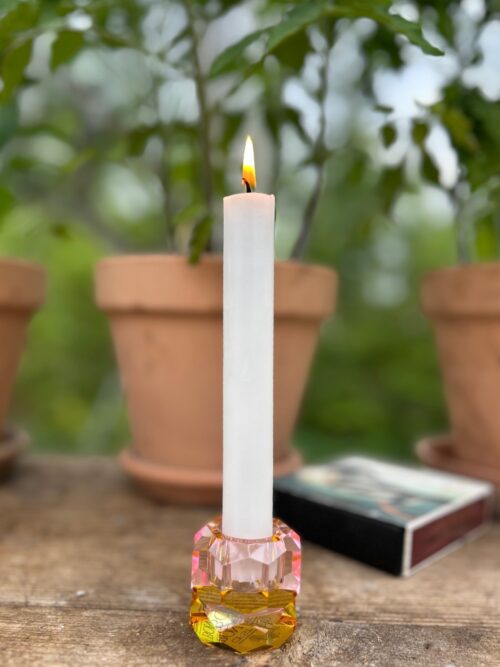Krystal Ljusstake Gul/rosa
