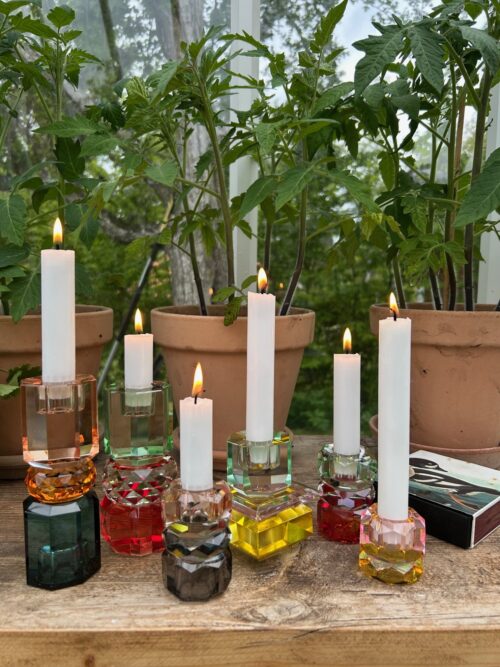Krystal Ljusstake Gul/rosa/ljus mintgrön