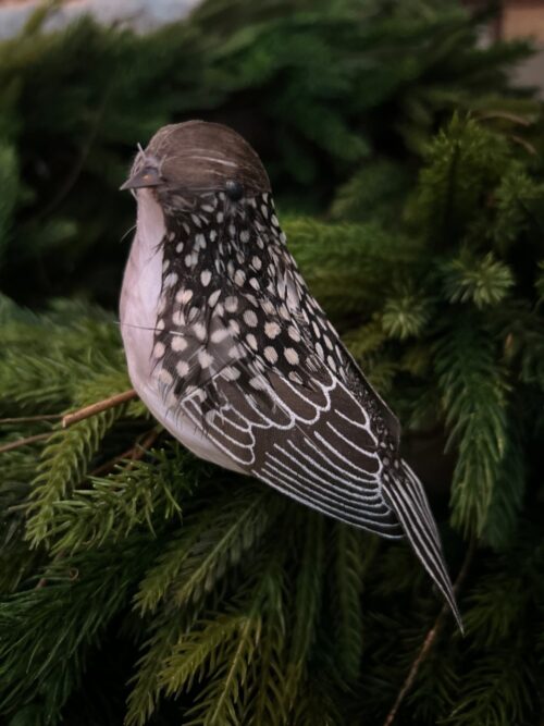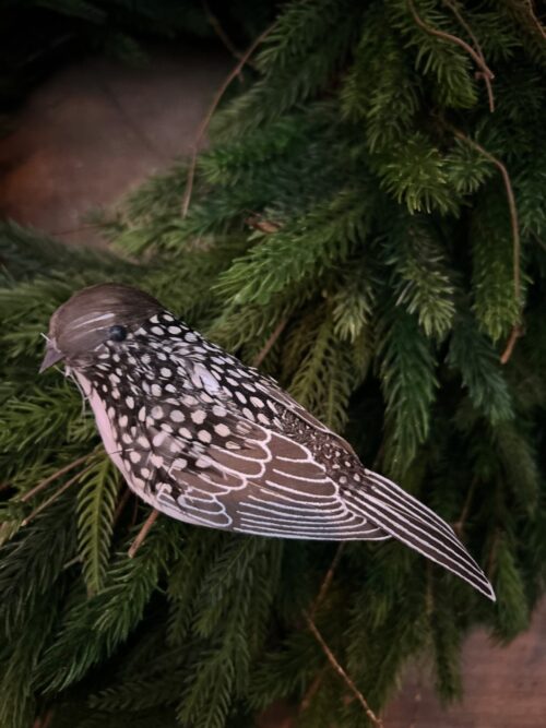 Fjäderfågel brun/vit med klämma