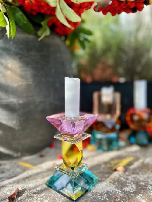 Krystal Ljusstake Petrol/gul/violett