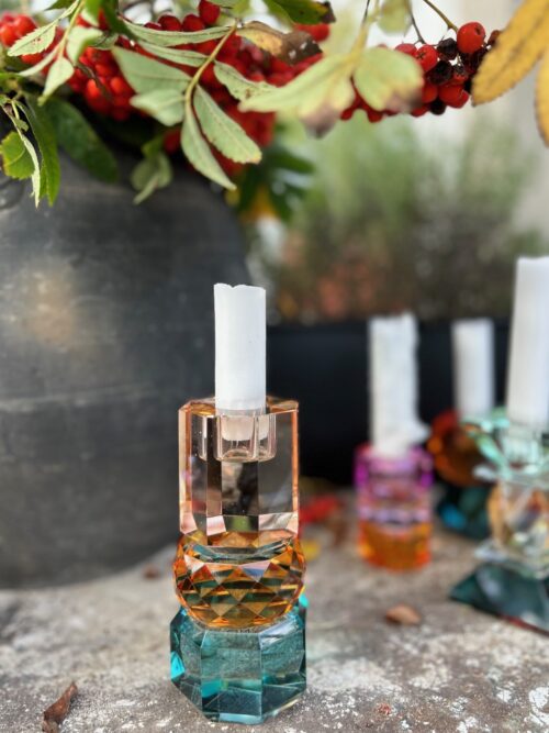 Krystal Ljusstake Petrol/amber/persika