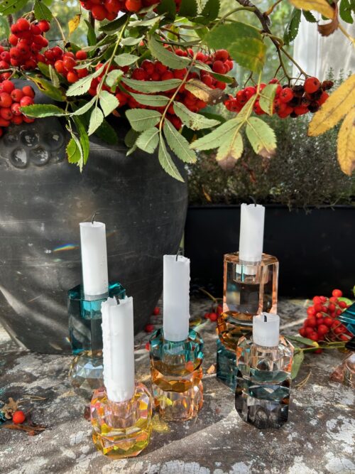Krystal Ljusstake Persika/rosa/petrol