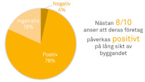 Det finns ett påfallande starkt stöd för byggnationerna – byggande och aktivitet kopplas till utveckling och tillväxt, särskilt på längre sikt. 8 av 10 anser att deras företag påverkas positivt på lång sikt av byggandet. Framtidstron stöds av de rapporter om tillväxteffekter som tagits fram inför Ostlänken och som pekar på att Ostlänken innebär minst 25 000 årsarbeten. Inte bara i bygg- och anläggningsbranschen utan även för exempelvis handel, hotell- och restaurangverksamhet, transporter samt inom välfärdsbranscher såsom skola och omsorg.