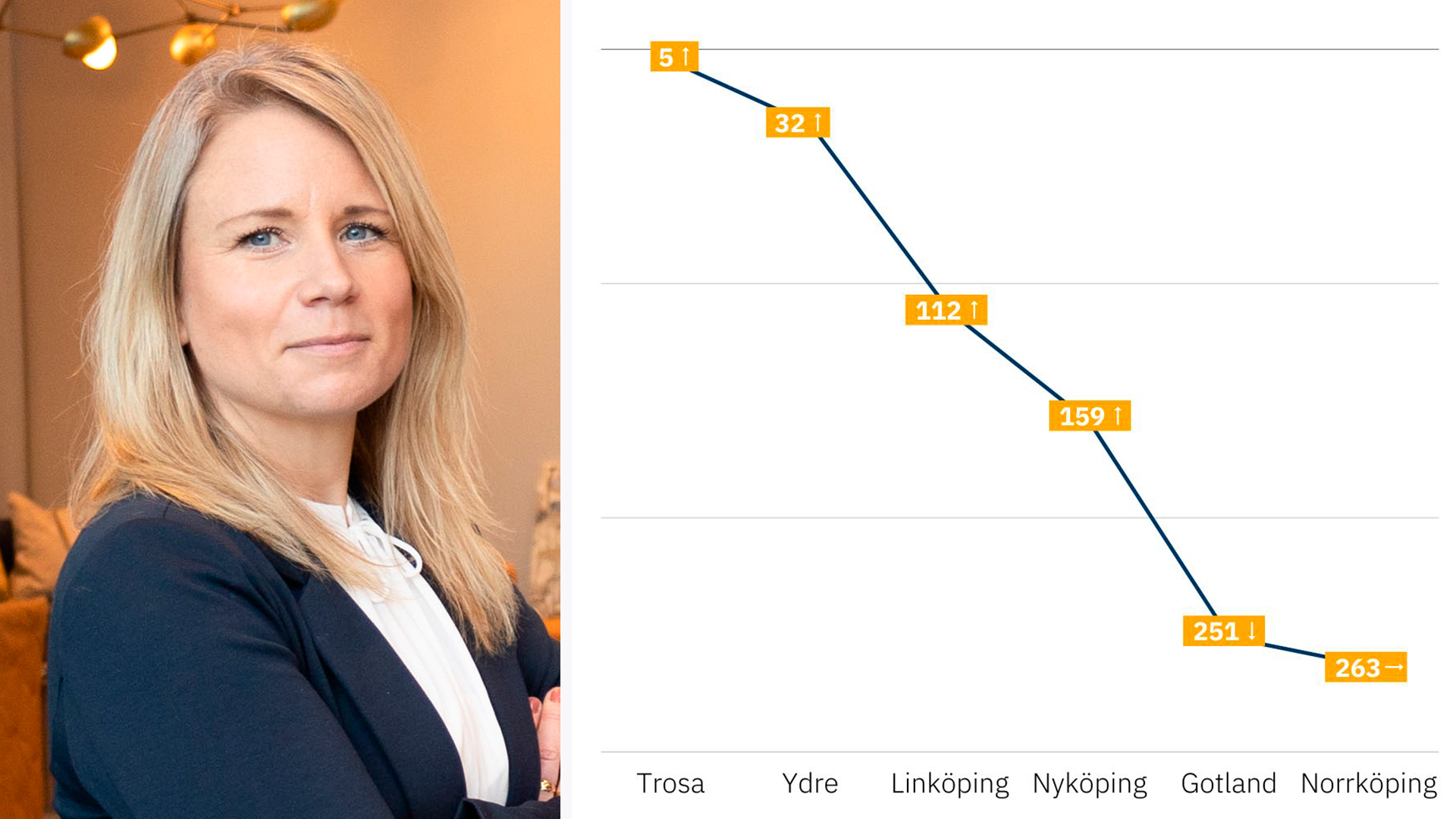 Bland de östgötska kommunerna finns också framgångar att uppmärksamma. Linköping stiger i rankingen till plats 112 (132), Ödeshög vänder uppåt igen till en mer hemmastadd plats 72 (118) och Ydre, som är van vid topp 50-placeringar landar i årets ranking på fina 32 (40).