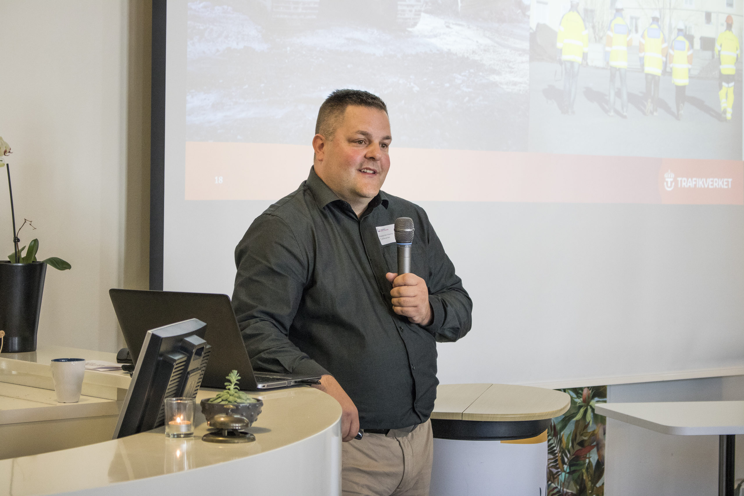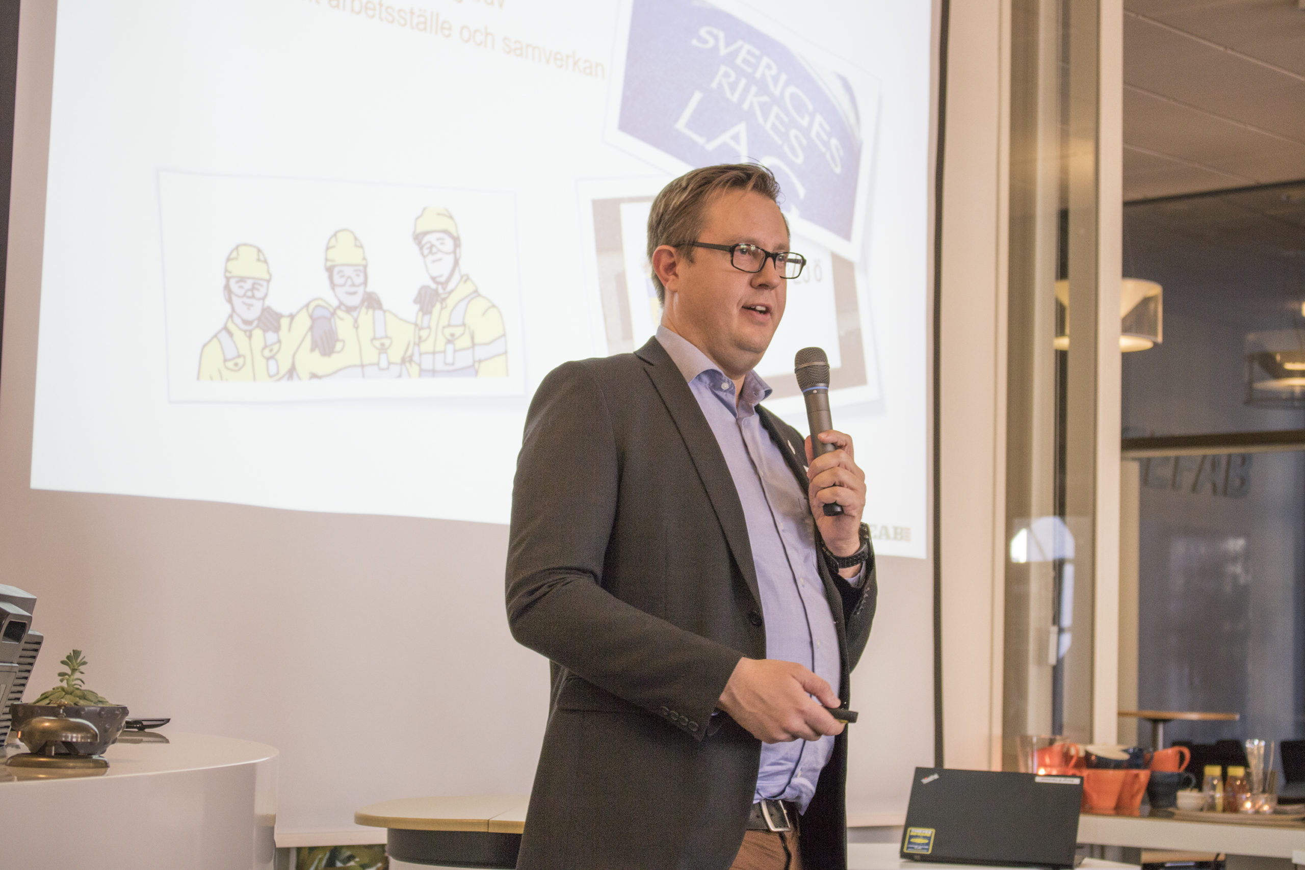 Bengt Hansson från PEAB berättade om den mångfald av risker som finns kring olika byggprojekt och också vilket långtgående säkerhetsansvar som ligger på byggherren.