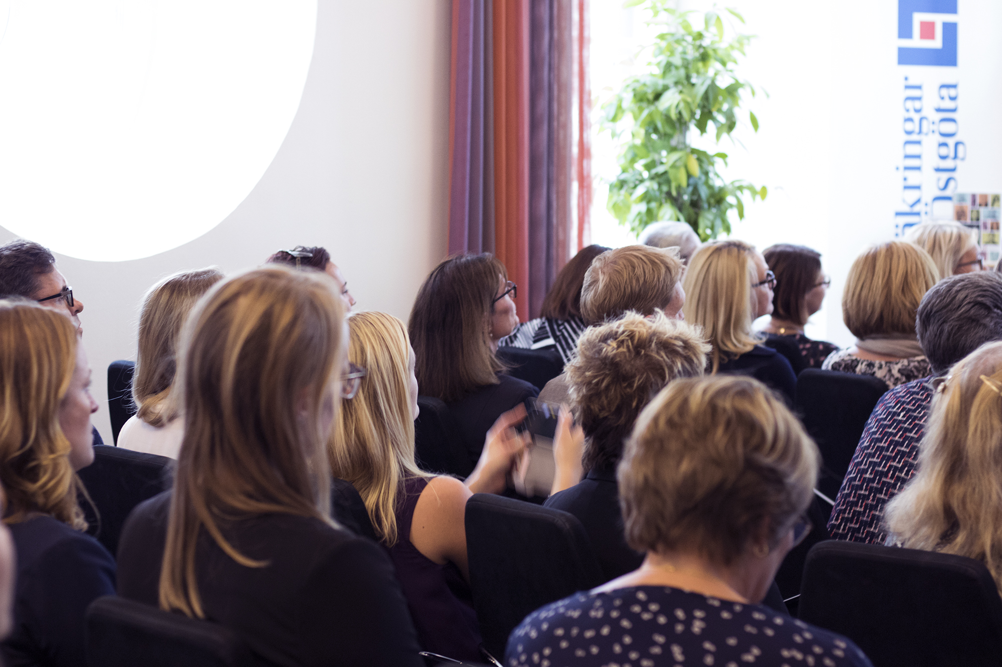 Eftermiddagen inleddes i Länsförsäkringar Östgötas nya lokaler i centrala Norrköping där Sophia Nygren var en av dem som hälsade välkomna. Hon är skadechef inom Länsförsäkringar och berättade kort om sin karriär, hur hon började som undersköterska, pluggade till socionom men sedan började på Länsförsäkringar och är idag chef där. En ypperlig start på en eftermiddag om kvinnligt ledarskap.