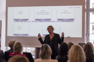 – Det här tjafset om att man inte kan få tag på kompetenta kvinnor, det är bara att gå hit och plocka! säger Ulrika Sedell och syftar så klart på åhörarna som idag är en stor samling kvinnor från 100-listan med styrelsekompetens.