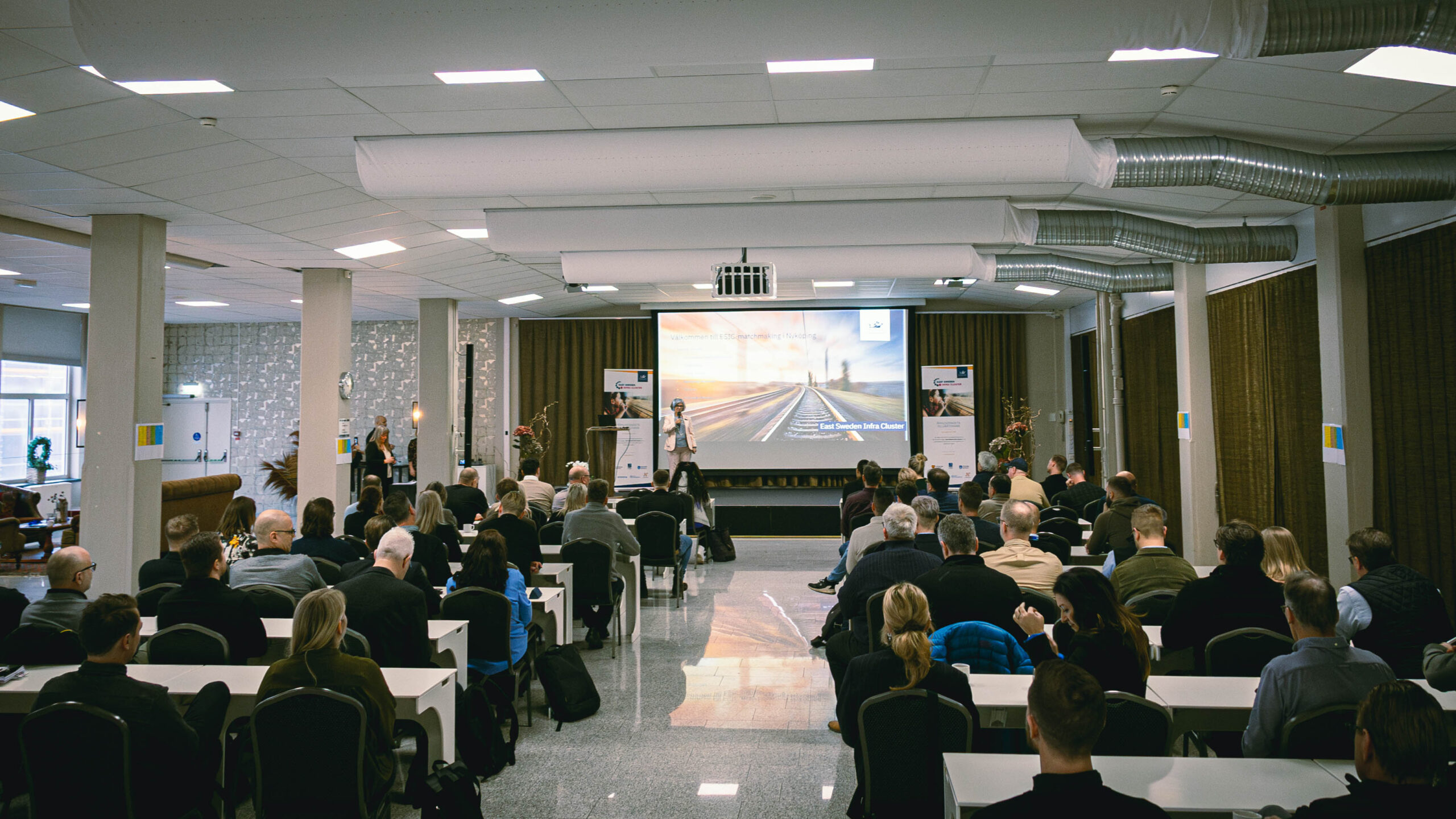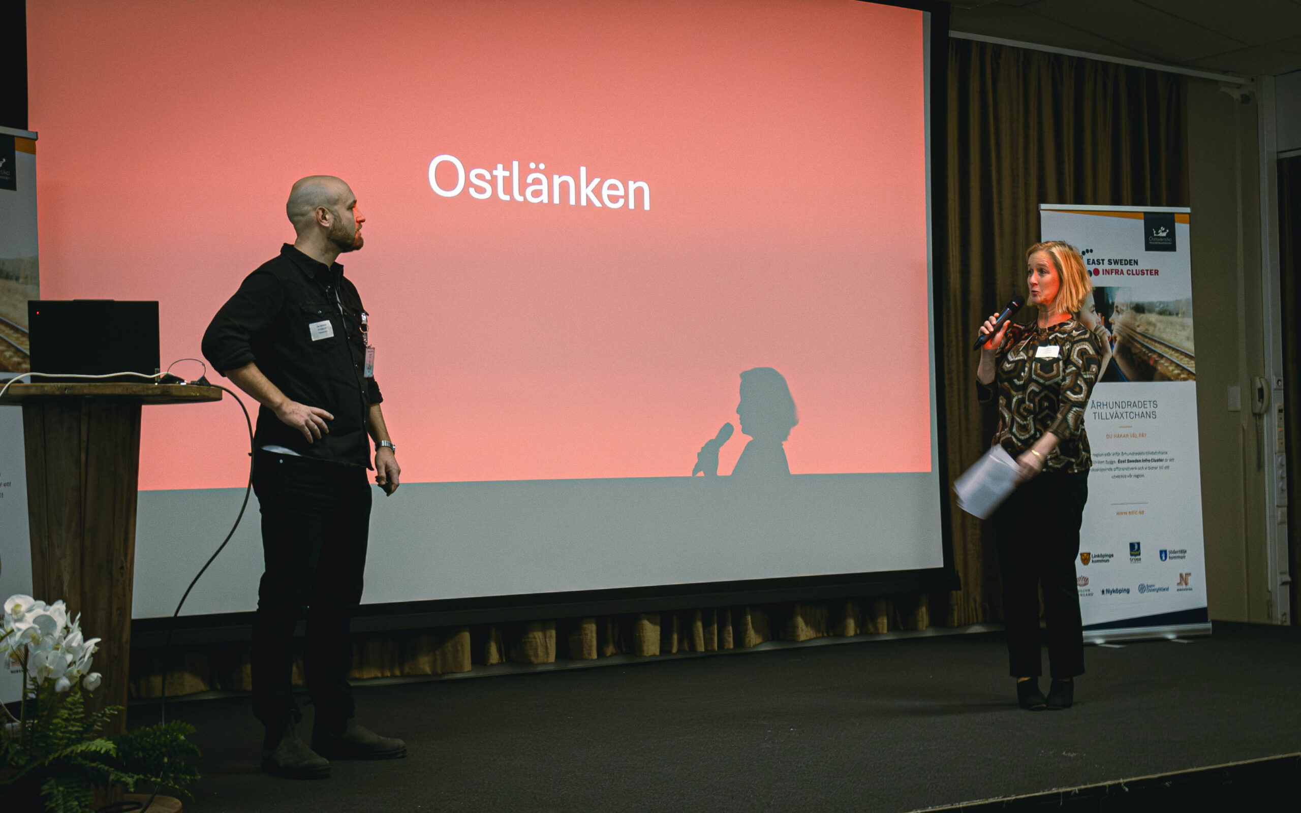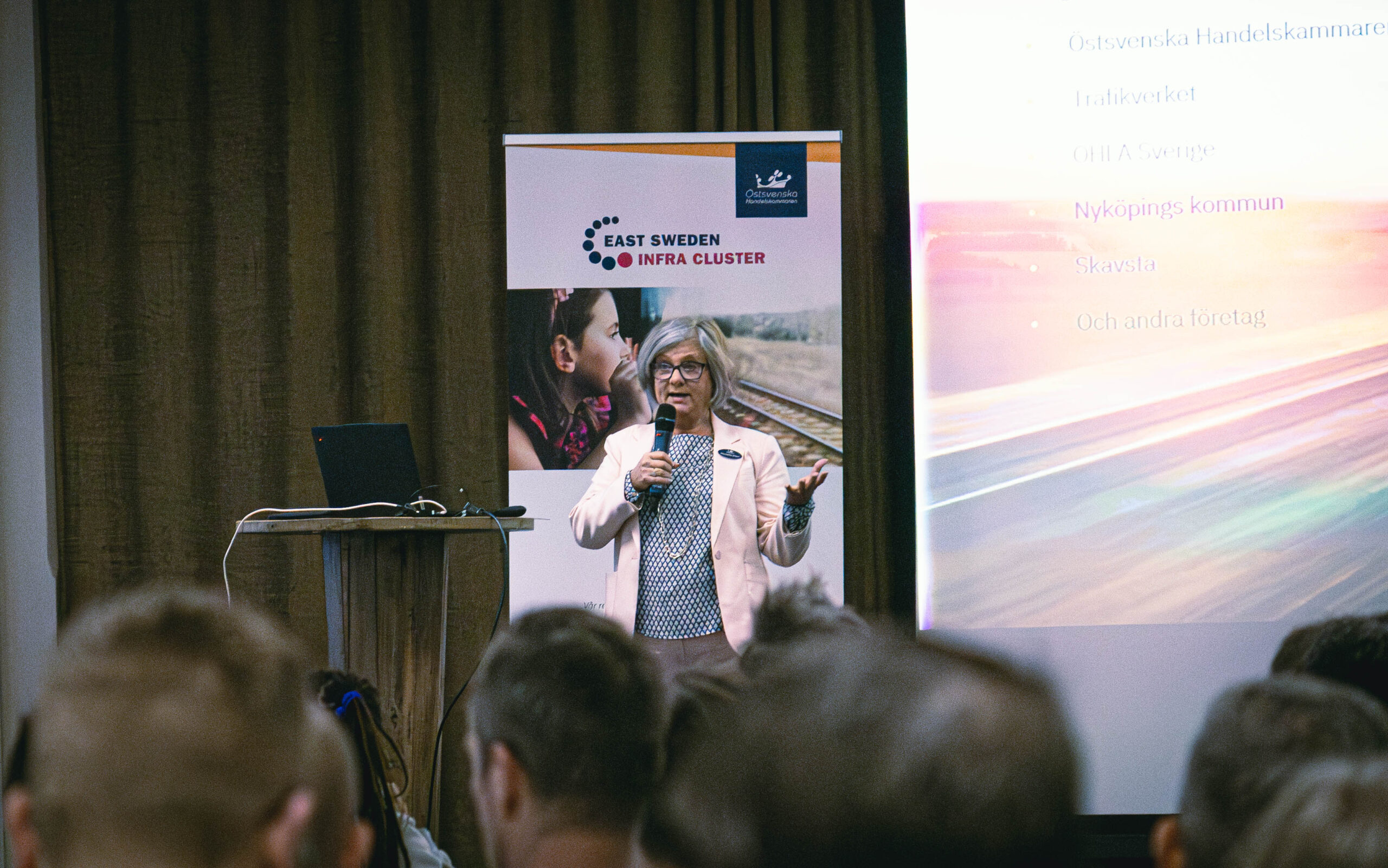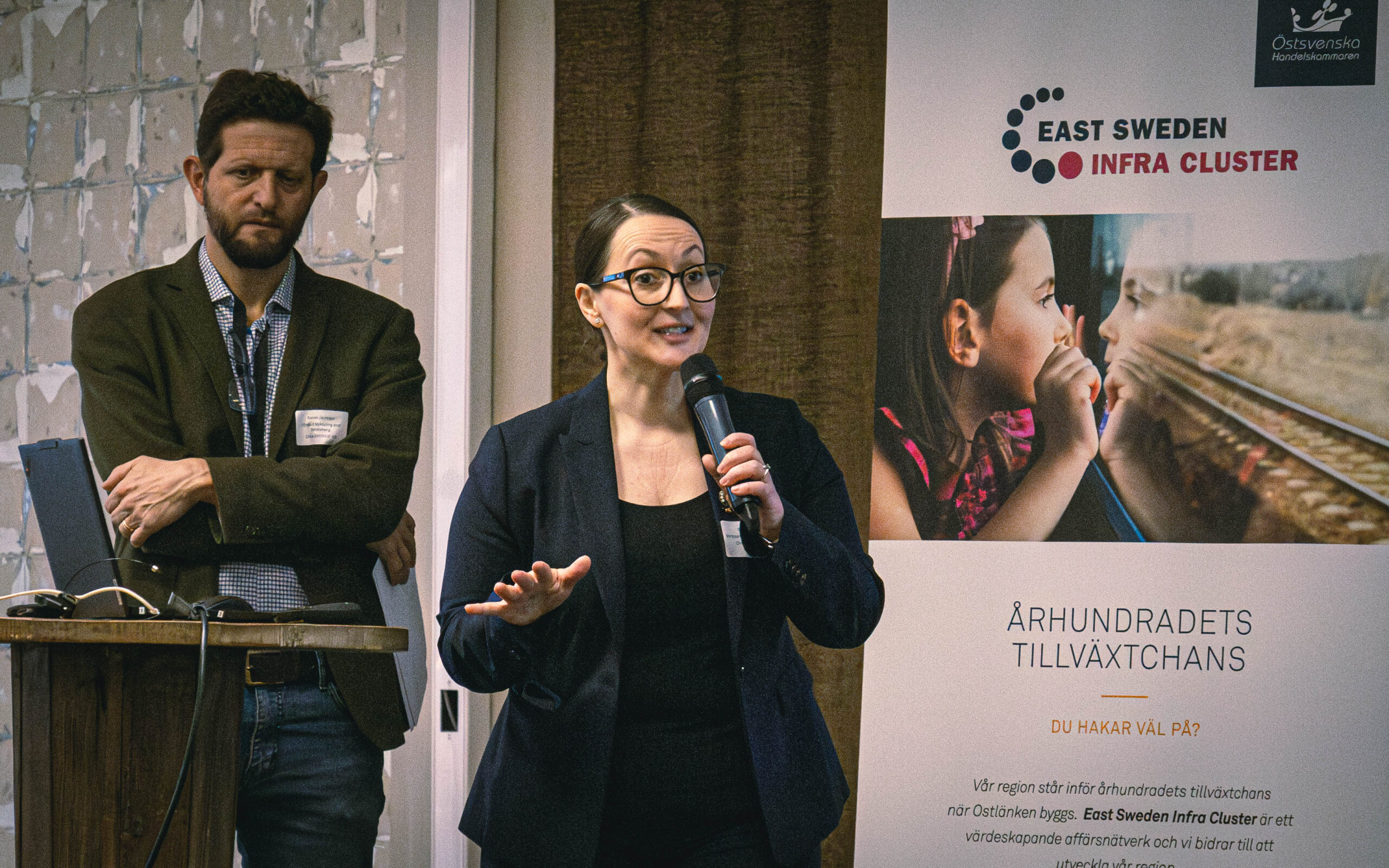 Efter inledande nätverkande, fika och välkomsthälsning från Handelskammarens Charlotta Elliot, tog Trafikverkets Ylva Gustafsson Höjer och Joel Renblom vid. I sin presentation berättade de om Ostlänken genom Nyköping, med nytt resecentrum, tillkommande bibana och stationen som ska byggas i Skavsta.