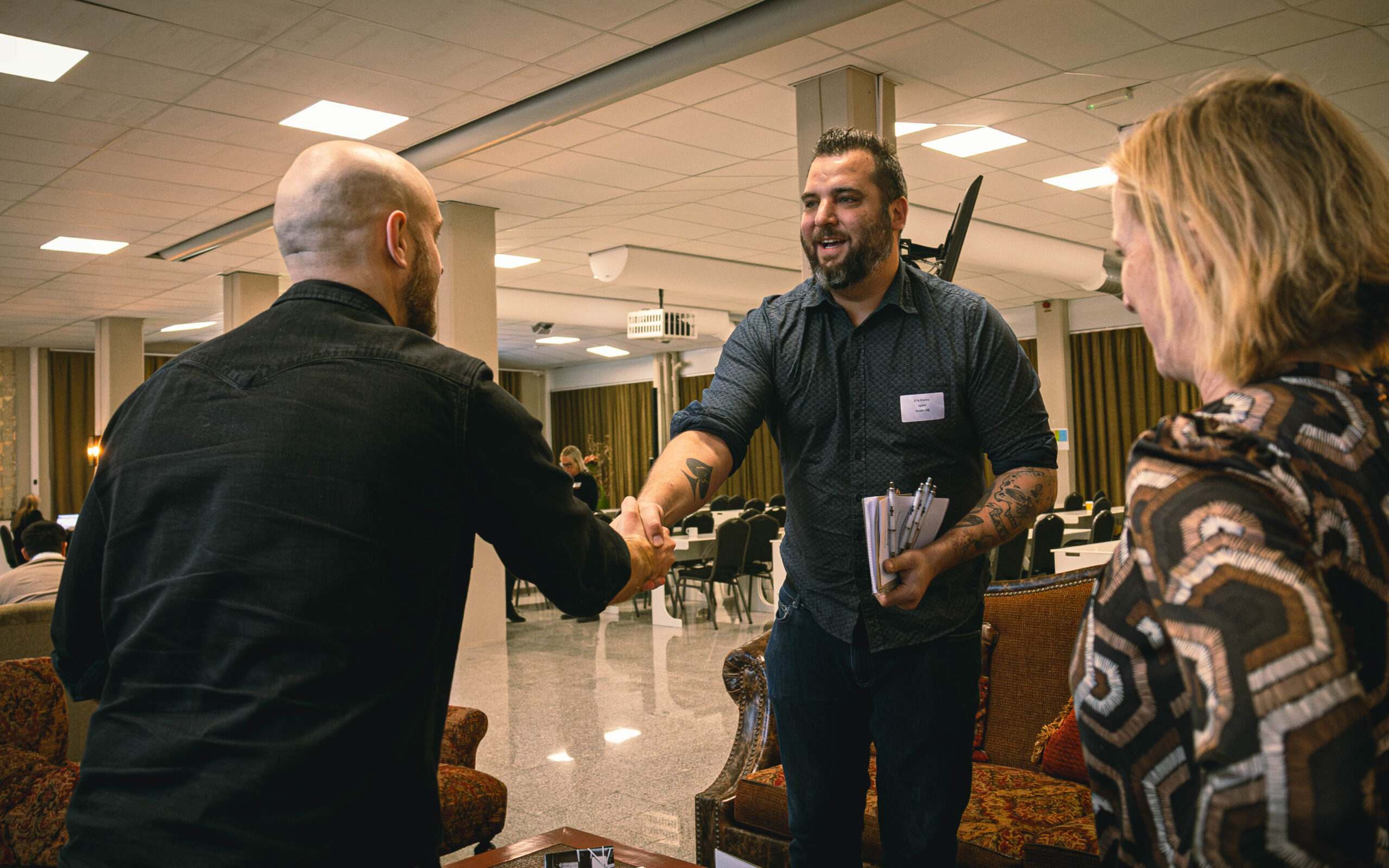 Efter dragningarna följde en timmes speeddejting mellan de fyra aktörerna och företagen, enligt ett tight upprättat schema. Speedejtingen erbjöd engagerande samtal och många byten av kontaktuppgifter – och alla höll tiderna klockrent! Nyfikenheten mellan aktörerna och näringslivet var uppenbart ömsesidig. Detta gladde Charlotta Elliot som summerar dagen så här: