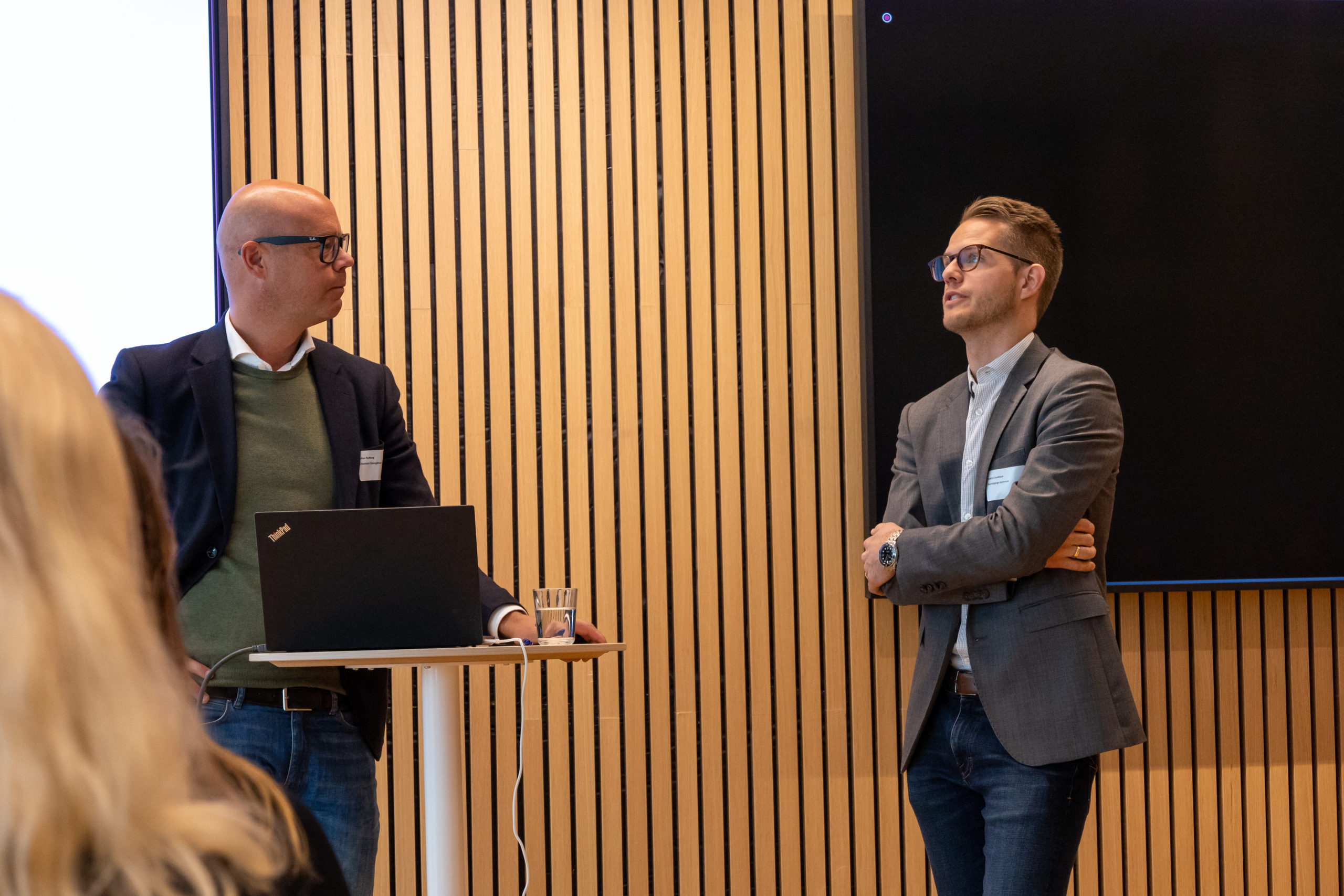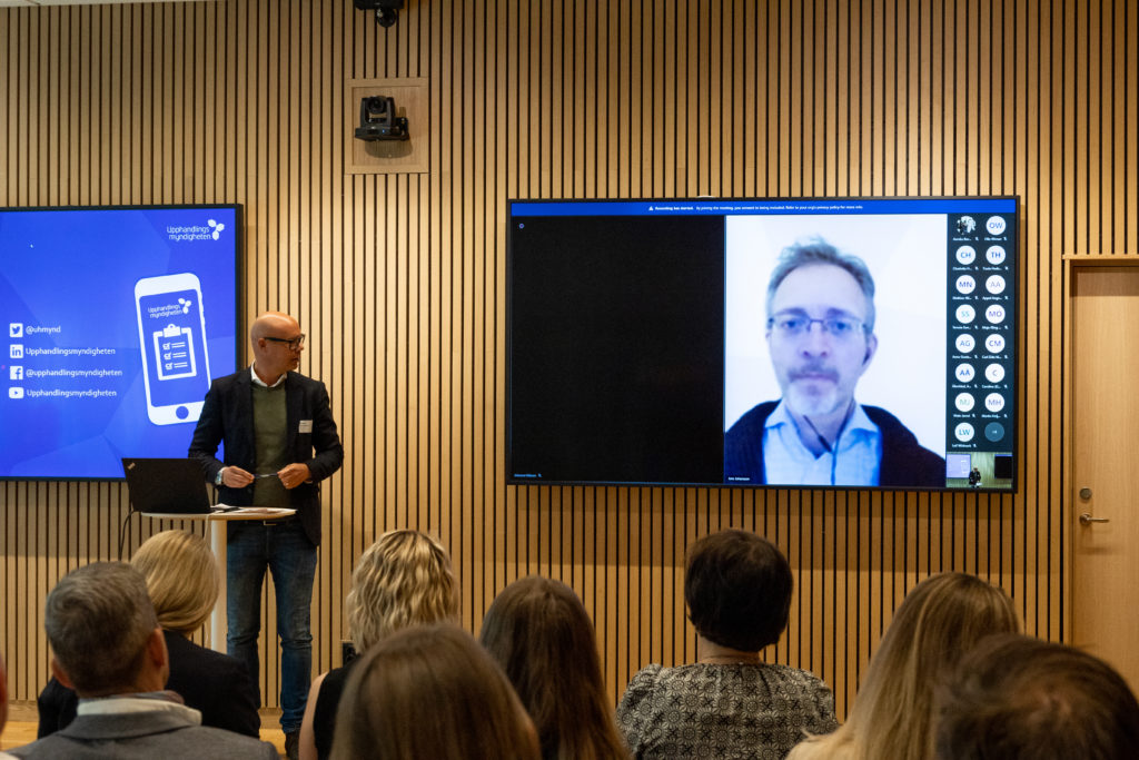 Det första passet gjordes en inflygning av Jens Johansson på Upphandlingsmyndigheten, om det stöd och den hjälp som faktiskt redan finns via myndigheten. Och det var ganska mycket! Både via deras hemsida eller från de 70 personer som arbetar på den relativt nya myndigheten. Olle Wiman på HBV (Husbyggnadsvaror) berättade vidare om ett projekt som Upphandlingsmyndigheten initierat med en miljöspendanalys. HBV:s medlemmar inom allmännyttan kan använda sig av den för att för att fatta de inköpsbeslut som gör störst skillnad för klimatet och att följa upp att det verkligen bli så. Analysen kartlägger och visar var det största koldioxidutsläppet orsakas bland inköpen.