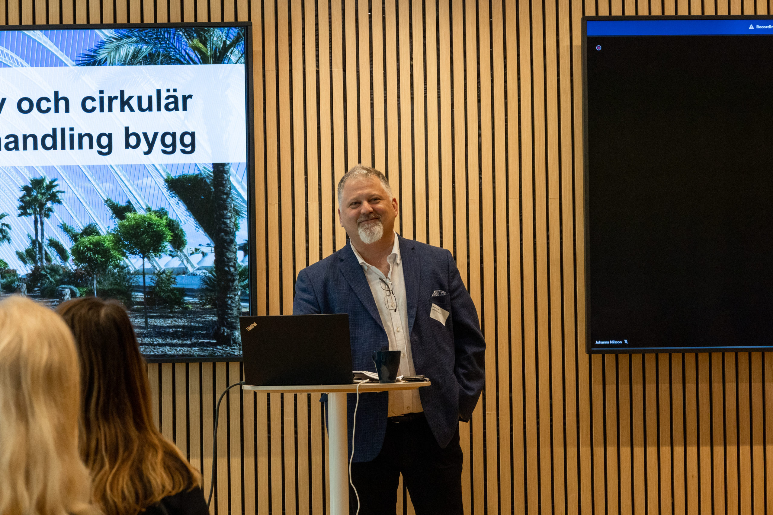 Mattias Lindahl från Linköpings Universitet föreläste om livscykelperspektiv och cirkulär ekonomi inom bygg och ville föra in ytterligare en parameter i form av funktion. Husens funktion och livslängd borde tas med i upphandlingsunderlaget för bättre klimat- och kostnadsanalys.